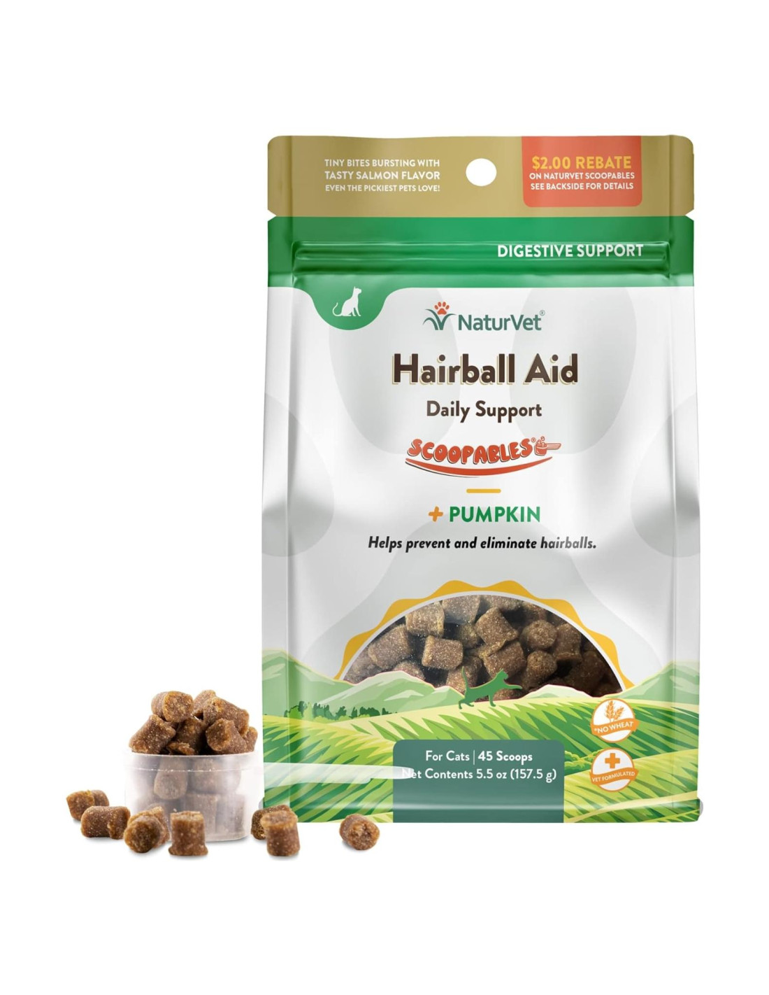 Scoopables están llenos de sabor y repletos de delicioso sabor a salmón, perfectos para comedores exigentes y tan eficaces como nuestros masticables suaves originales. Formulado por veterinarios para su uso en gatos mayores de 12 semanas. La cáscara de psyllium y la calabaza ayudan a eliminar y prevenir bolas de pelo cuando se usan a diario.