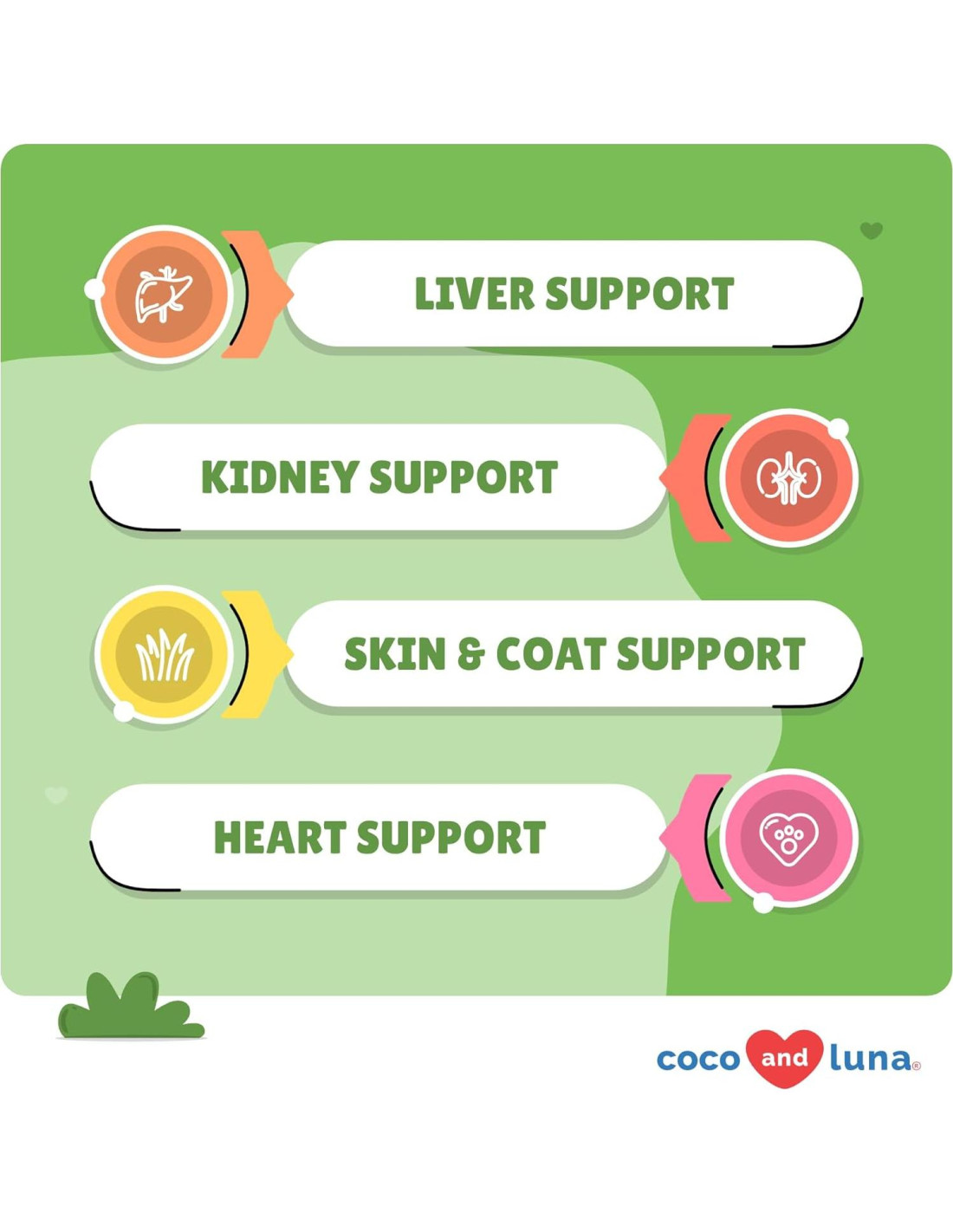 - Cardo Mariano - El soporte para hígado y riñones de Coco y Luna contiene Cardo Mariano, que es un ingrediente natural seguro y poderoso que desintoxica impurezas, elimina toxinas y remueve radicales libres dañinos.