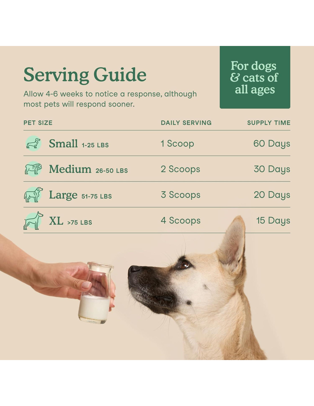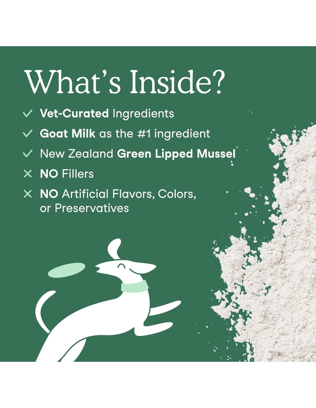 - Sin rellenos: Suplemento para caderas y articulaciones de perros formulado con glucosamina, MSM y mejillón de labios verdes que ayuda con la inflamación por el desgaste normal; hecho con leche de cabra entera para una fácil digestión