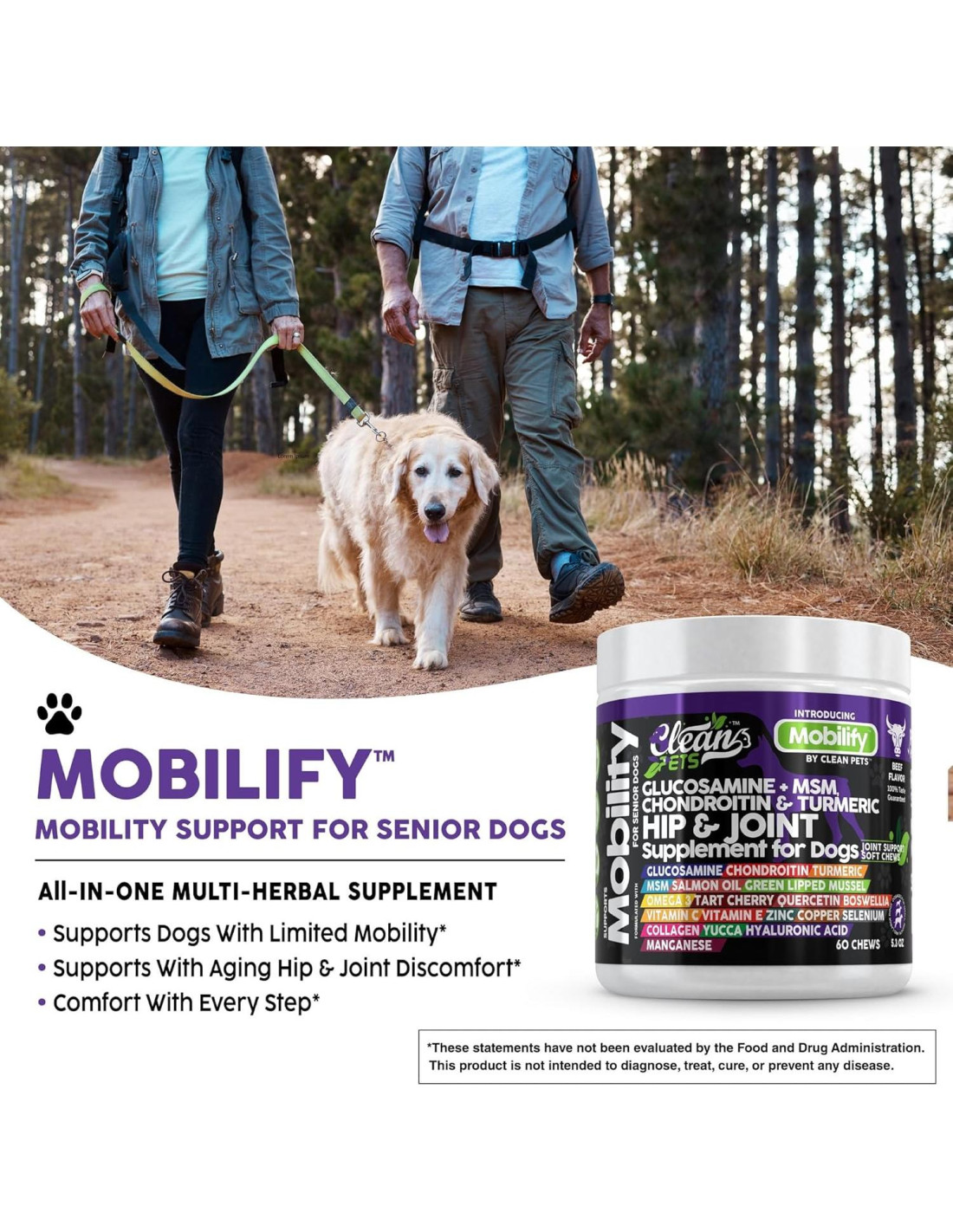 - Suplemento para Soporte Articular para Perros: Formulado para apoyar la movilidad de los perros y ayudar a reducir el dolor articular en perros. Ingredientes clave como glucosamina y condroitina para perros trabajan sinérgicamente para aliviar el dolor articular en perros. Nuestros suplementos articulares para perros vienen en sabor a res, lo que facilita dárselos como golosinas suaves para perros o en bolsitas para pastillas para perros. Los masticables para caderas y articulaciones para perros también funcionan como un analgésico con la adición de aceite de pescado omega 3, suplemento de vitamina E para perros y suplemento de cúrcuma curcumina.