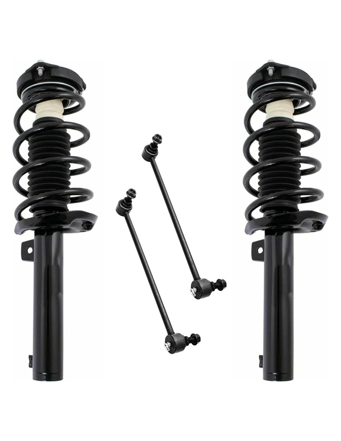 - El kit de suspensión incluye: 2x estribos delanteros con ensamblaje de resorte de bobina + 2x enlaces de barra estabilizadora delantera
