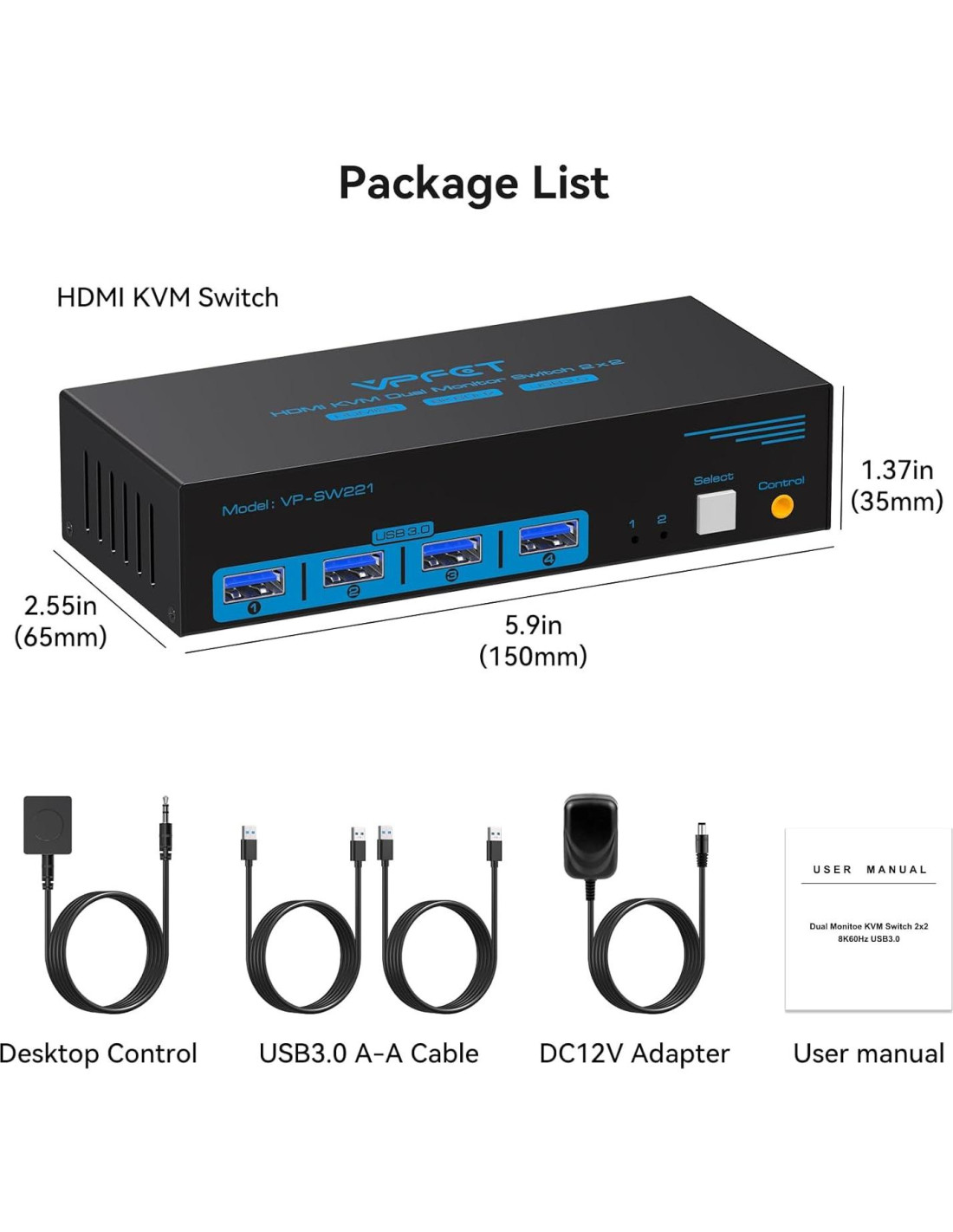 - Efectos Visuales Impresionantes: Este interruptor KVM HDMI 8K soporta resoluciones de hasta 8K@60Hz y 4K@120Hz, proporcionando una experiencia visual increíble con imágenes sorprendentemente realistas y colores vibrantes. También es compatible hacia atrás con 4K60@Hz, 1080P o resoluciones inferiores para compatibilidad con varios dispositivos HDMI