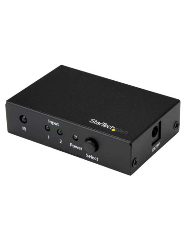Conmute entre dos fuentes de video HDMI en una sola pantalla, con soporte para resoluciones Ultra HD. Este conmutador HDMI de 2 puertos te permite compartir una pantalla o proyector HDMI 2.0 con dos fuentes de video HDMI 2.0. El conmutador cuenta con dos entradas de video independientes que pueden soportar resolución 4K a 60Hz, lo que lo convierte en la solución perfecta para conectar dos fuentes de video a una pantalla que tiene un número limitado de puertos HDMI 2.0. Calidad de imagen asombrosa con soporte para Ultra HD 4K a 60Hz. Este conmutador HDMI te permite aprovechar la capacidad de Alto Rango Dinámico (HDR) de tus fuentes de video HDMI 2.0 y entregarlo a tu pantalla UHD 4K60. A diferencia de muchos conmutadores 4K que solo soportan una tasa de refresco de 30Hz, este conmutador funciona con pantallas HDMI 2.0 con resoluciones de salida de hasta 3840 x 2160p a 60Hz. No te dejes engañar por un giro ingenioso en la tecnología antigua. Muchos conmutadores HDMI soportan 4K pero solo funcionarán a una tasa de refresco de 30Hz, o afirman soportar 60Hz pero comprimen fuertemente su señal a un muestreo de croma 4:2:0 inferior para funcionar a tasas de bits inferiores. Este conmutador HDMI 4K 60Hz utiliza los últimos componentes para ofrecer soporte completo para tu equipo HDMI 2.0, soportando verdadera resolución 4K a 60Hz con muestreo de croma 4:4:4. El soporte para dispositivos HDMI 2.0 significa que este conmutador puede transmitir un ancho de banda de hasta 18Gbps, lo que lo convierte en una solución de video ideal para tareas informáticas de alta resolución. El conmutador HDMI HDCP 2.2 es compatible hacia atrás con pantallas 4K 30Hz y 1080p, lo que asegura que funcionará con pantallas de menor resolución como televisores o proyectores en tu sitio o en tu aplicación de señalización digital. Operación sin complicaciones con conmutación automática. Este conmutador asegura una operación sin esfuerzo con conmutación automática que detecta y selecciona un dispositivo recién conectado, perfecto para cambiar automáticamente a un reproductor de medios 4K como un reproductor Blu-ray UHD 4K tan pronto como se enciende.