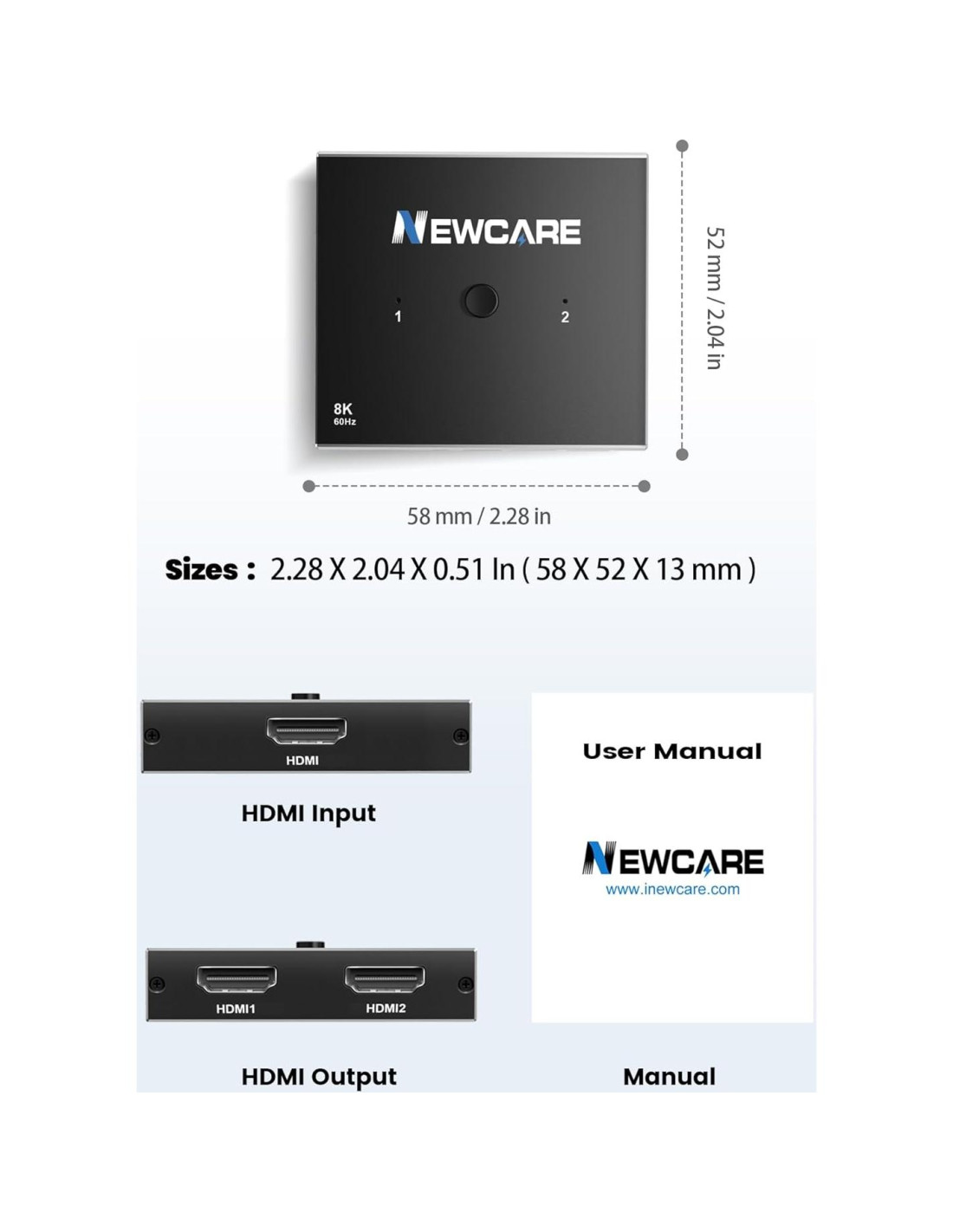 - Color: Conmutador HDMI 8K@60Hz 2 en 1 salida