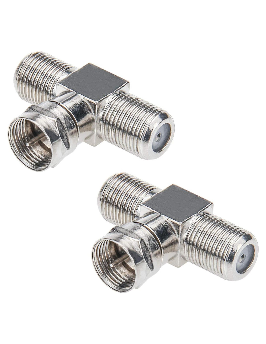 - El paquete incluye: 2 conectores en forma de T de macho F a hembra F dual.