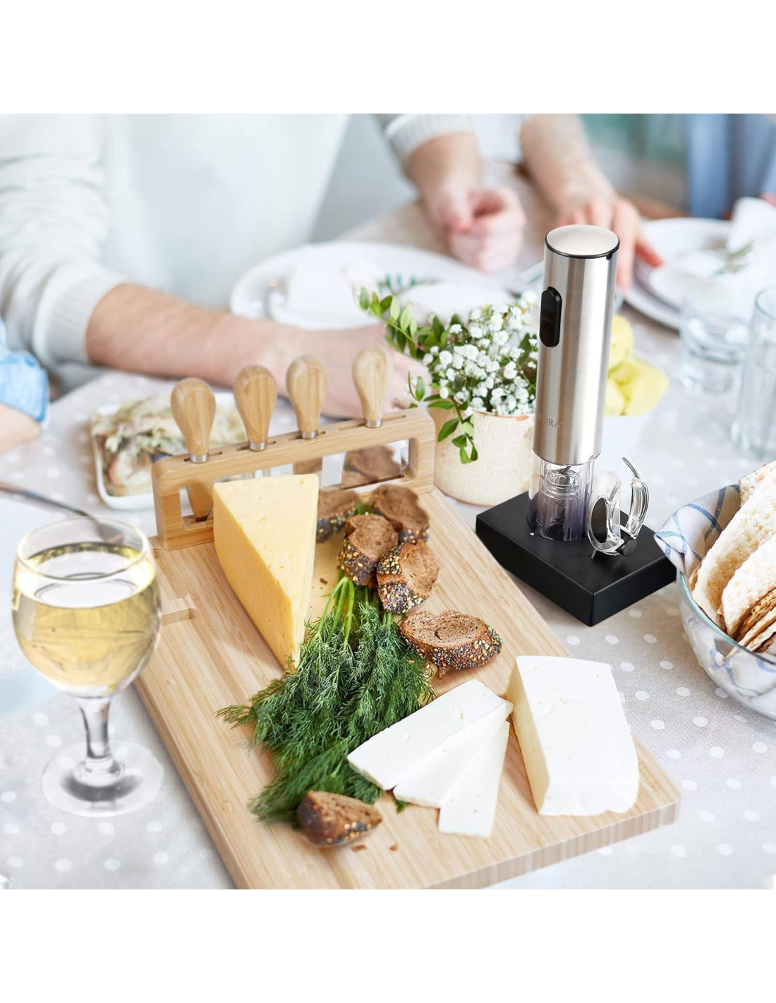 - DISEÑO DE ACCESORIOS PARA TABLA DE QUESO: Nuestra tabla de charcutería cuenta con 4 cuchillos de acero inoxidable y está equipada con un soporte para cuchillos para mantener el cuchillo seguro y ordenado