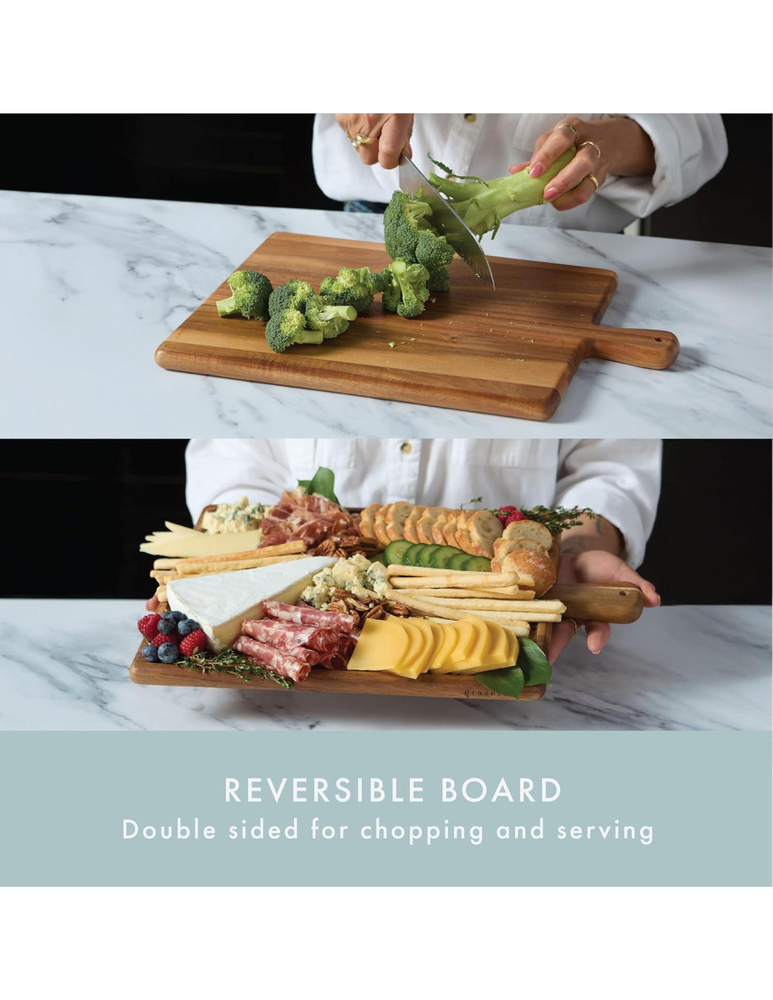 - TRIFECTA DE GRANO DE MADERA: Los patrones de grano únicos de la acacia y los ricos tonos de marrón, castaño y rubio hacen que tu tabla sea única.