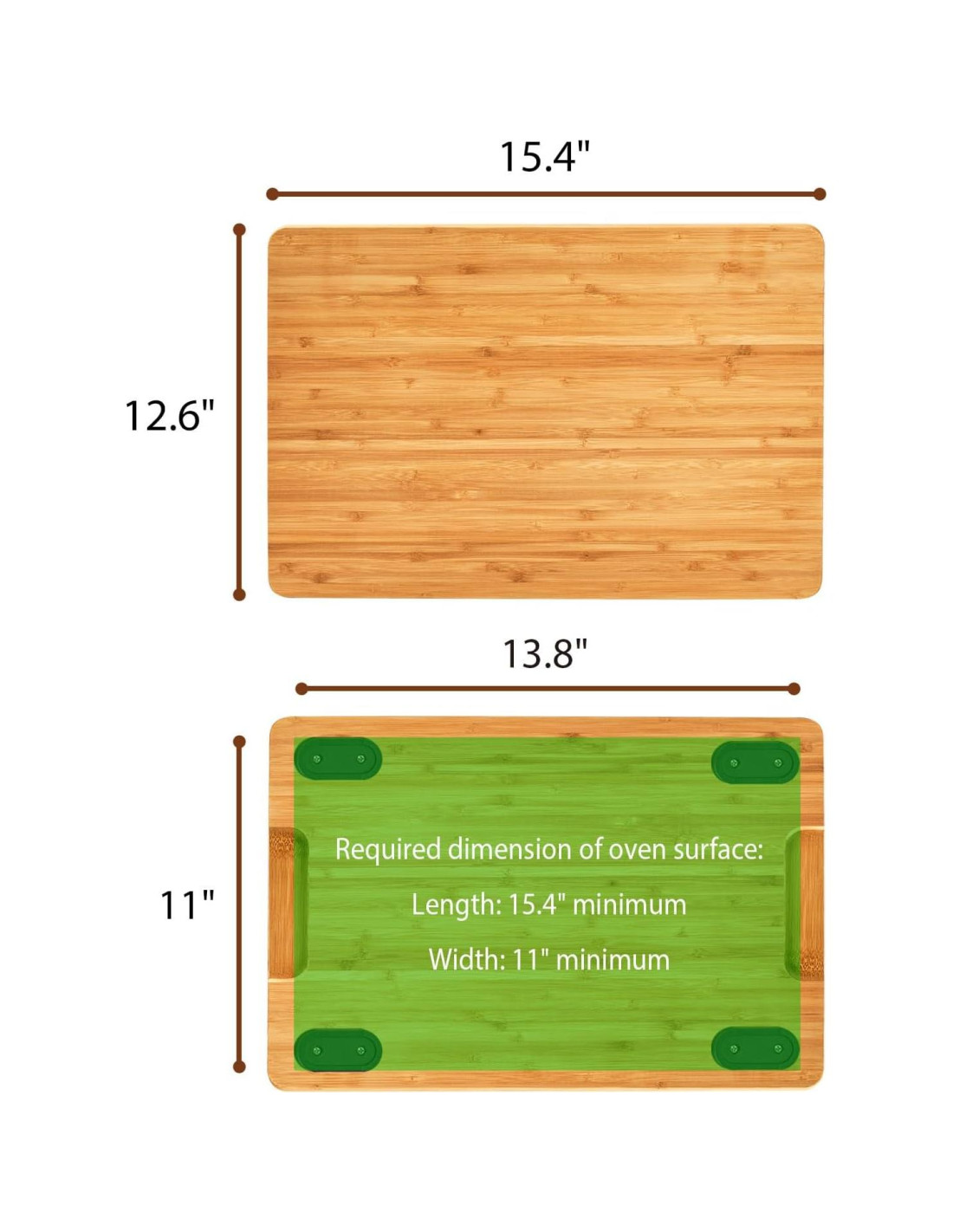 - Tabla de cortar de bambú sobre horno de convección (horno excluido): Diseñada para ser compatible con SP151. Se coloca de manera estable sobre el horno, protege los gabinetes de daños y protege a la familia y mascotas de quemaduras por calor.