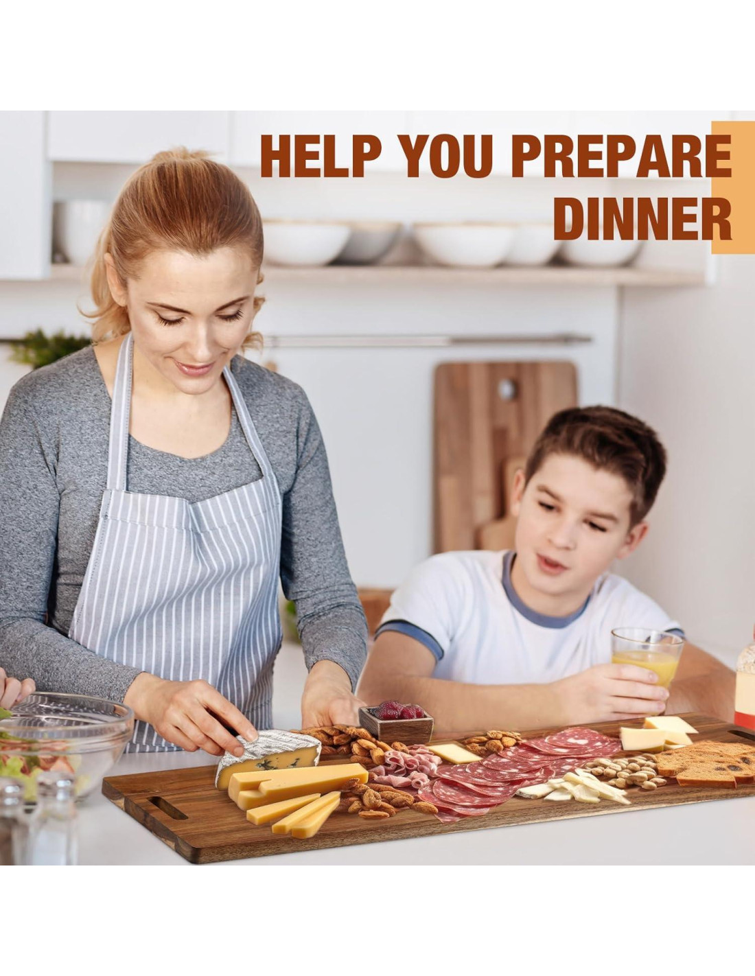 - Amplia Aplicación: estas grandes tablas de charcutería pueden aplicarse como tablas de cortar para cortar pan o bisteques, y el tamaño largo y ancho de estas tablas de cortar las hace ideales para servir aperitivos como quesos, carnes, verduras, galletas y más
