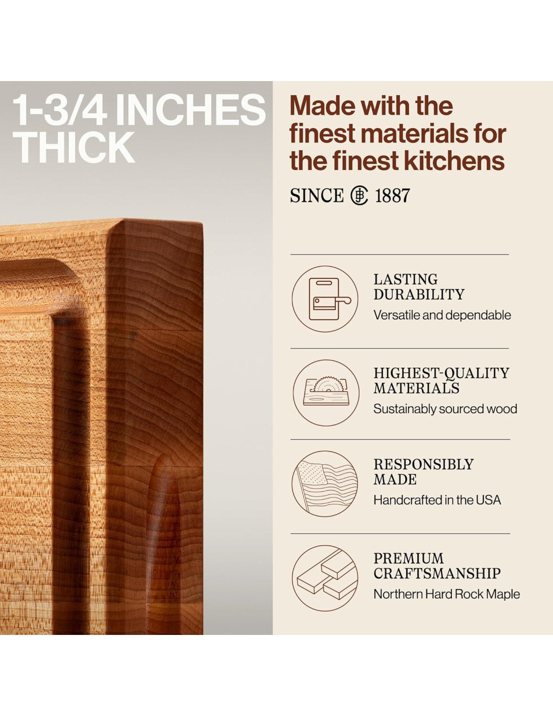 - Hecha para la Vida: Disponible en 2 tamaños diferentes para tus necesidades de servir y tabla de charcutería, esta gran tabla de cortar de madera presenta un grosor de 4.45cm, una construcción de grano de bisel y un canal para jugo.