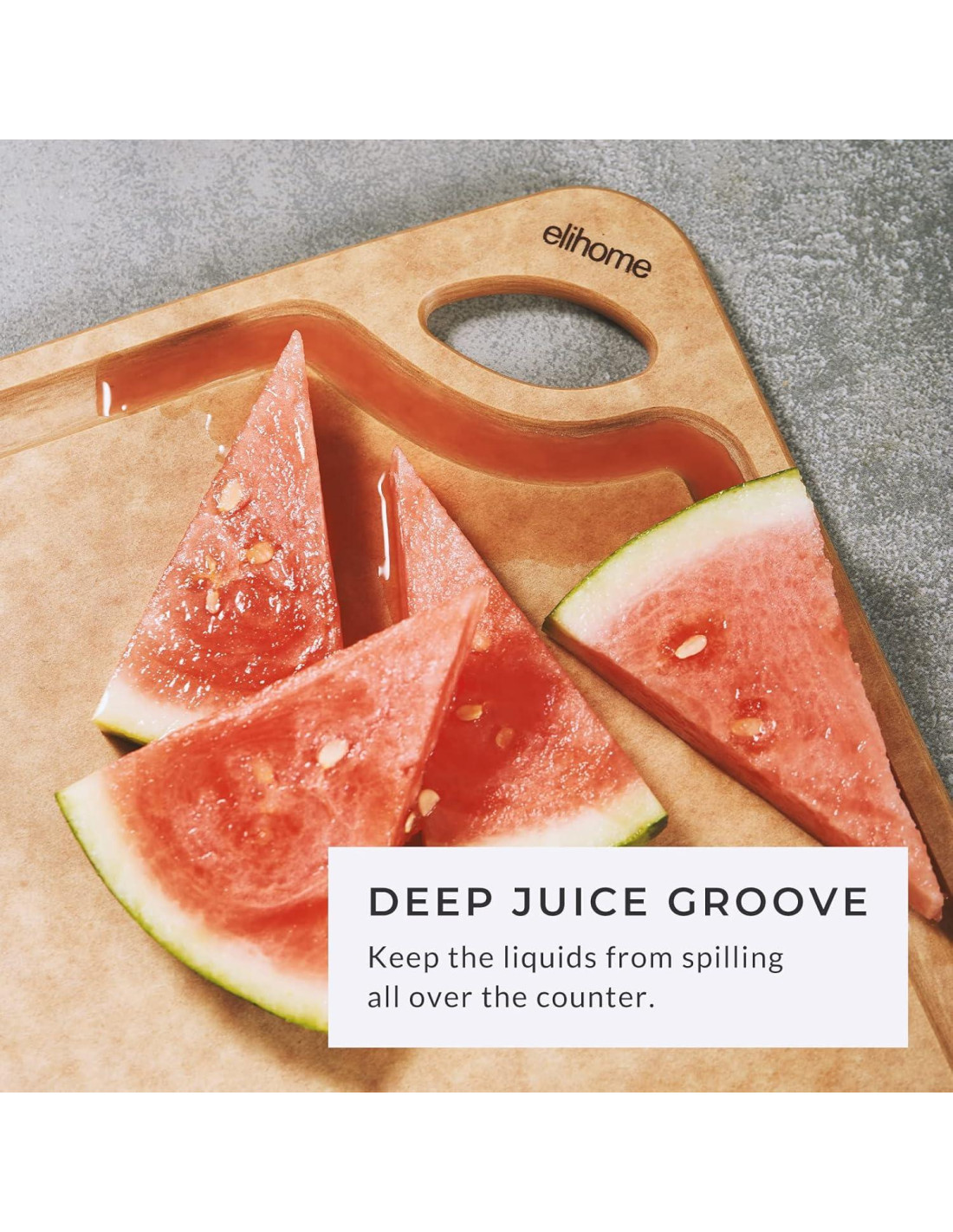 ¡Vive para cocinar, en lugar de cocinar para vivir! Elihome ofrece esenciales de cocina seleccionados que se alinean con tu visión y valores. Descubre herramientas innovadoras para mejorar tus habilidades culinarias y crear alegría a través de comidas deliciosas y nutritivas. Abraza una existencia bien vivida, atesora a tus seres queridos y conéctate con tus pasiones con Elihome. Tabla de cortar pequeña 25.4 x 17.8 cm Tabla de cortar mediana 33 x 25.4 cm Tabla de cortar grande 40.6 x 30.5 cm Perfecto para la preparación diaria de comidas, sin importar qué verduras o carne. Este diseño fácil de usar es fácil de agarrar y almacenar. El diseño de surco profundo presentado puede mantener los líquidos y goteos de derramarse. Esta tabla puede resistir marcas de cortes profundos y proteger cuchillos. Esta tabla es 100% apta para lavavajillas y ahorra tu tiempo. Esta tabla es resistente al calor hasta 176C, y se puede usar como un salvamanteles.