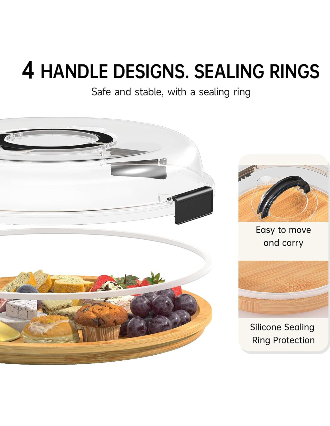 - PERSONALIZABLE Y PORTÁTIL: Organiza quesos, frutas, nueces y carnes en los compartimentos para crear exhibiciones personalizadas y llamativas. Un mango portátil está en la tapa del contenedor transparente exterior. Puedes usar el mango con confianza para llevar la tabla de charcutería a cualquier lugar, ideal para picnics, fiestas y más.