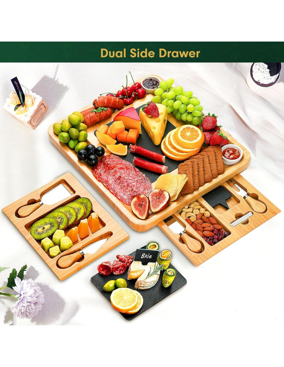 - Versátil y espaciosa -- Midiendo 69.7 cm x 32.0 cm x 4.1 cm, este juego de regalo de tabla de charcutería incluye 2 cajones de apertura suave, proporcionando amplio espacio para todos tus quesos y charcutería favoritos