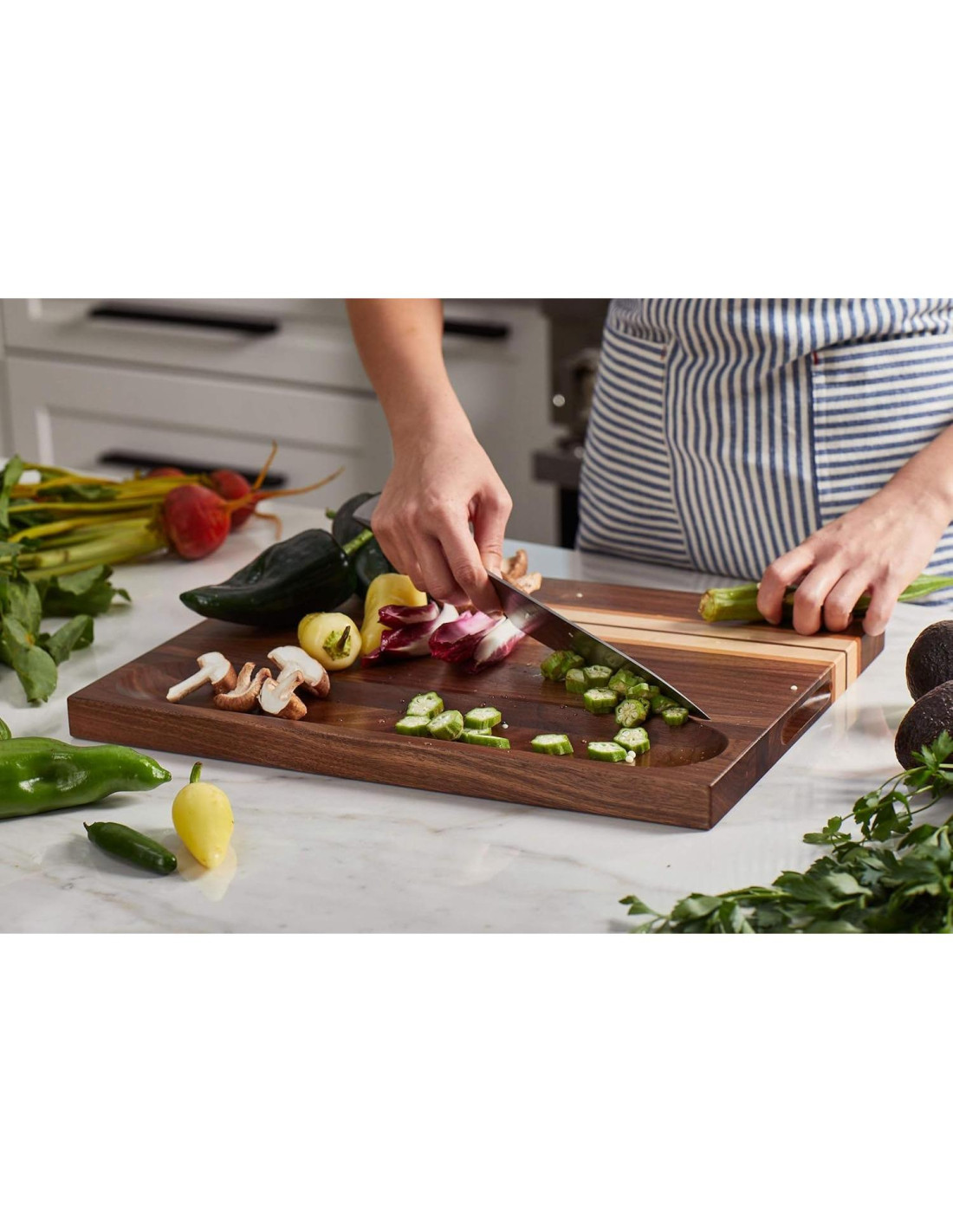 - AMIGO DE CUCHILLOS DE NOGAL - Lo suficientemente duradero como para sostener la hoja de un cuchillo pero lo suficientemente blando como para evitar que se desafile, hace que el nogal esté en la parte superior de la lista de maderas amigables con los cuchillos, y un material ideal para tablas de cortar. Como con todas las tablas de cortar de madera, algunas marcas de cuchillo estarán presentes después del uso, pero el engrasado regular cada 3 semanas suavizará las marcas, preservará brillantemente el rico color y evitará que la tabla se seque.