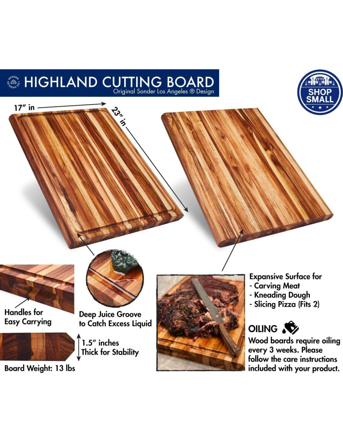 - MADERA DE TECA DURADERA - Conocida por su excepcional resistencia a la humedad y fuerza debido a su alto contenido natural de aceite, la teca es un material ideal para tablas de cortar. La madera es lo suficientemente dura para permitir cortes limpios, pero aún es lo suficientemente blanda para mantener el filo de un cuchillo. Con el cuidado adecuado (solo lavado a mano) y engrasado mensual, Highland superará la mayoría de los artículos en tu cocina. Nuestra teca es de origen responsable de plantaciones sostenibles. Acabado de manera segura. Libre de BPA, ftalatos y formaldehído.