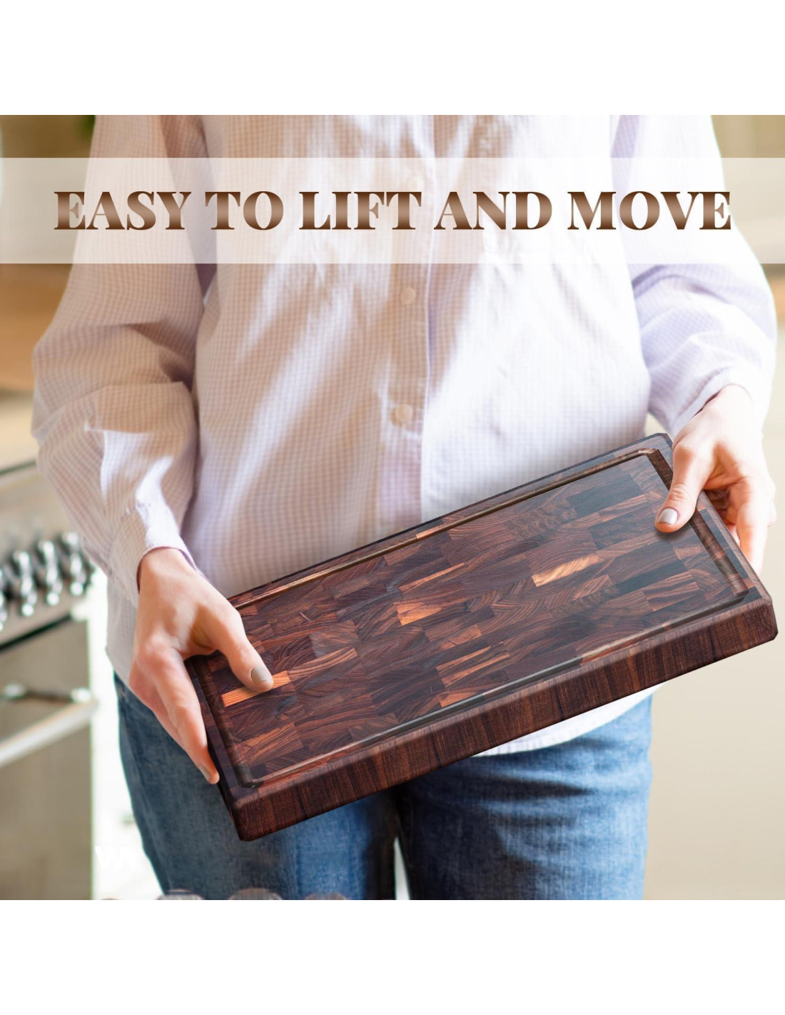 - Tabla de Cortar de Grano Final: Fabricada con construcción de grano final, nuestra tabla de cortar de nogal negro es excepcionalmente duradera y puede soportar un uso intensivo, mientras se mantiene suave con tus cuchillos.
