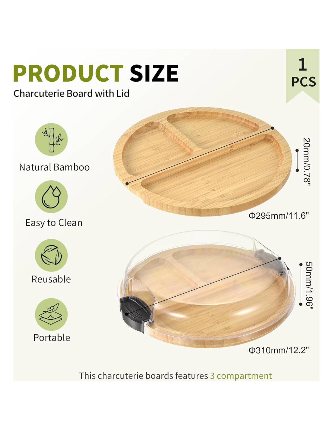 - Disfruta de tu Fiesta en Cualquier Lugar - La tabla de charcutería está diseñada con una tapa transparente y un sistema de bloqueo con hebilla y mango para mantener la comida fresca y en su lugar durante el transporte. No más preocupaciones sobre que la presentación de la comida se dañe, asegurando que la comida permanezca tan atractiva como cuando la serviste por primera vez. Perfecta para picnics, fiestas, bodas, inauguraciones de casa y otras ocasiones especiales.