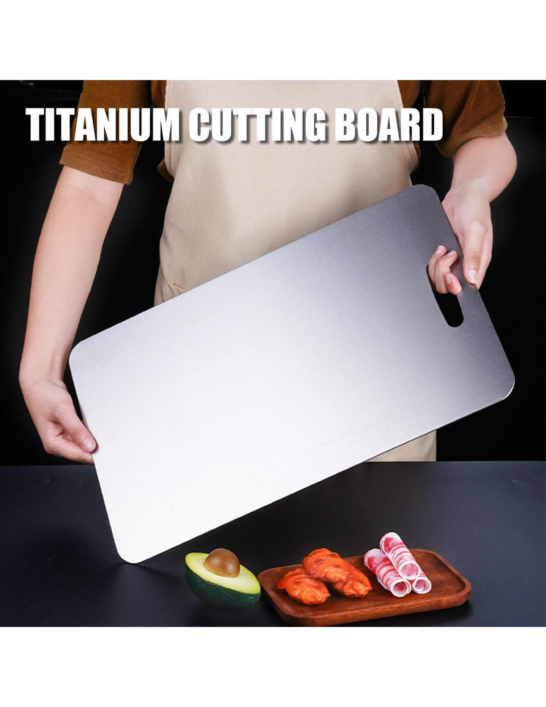- [Resistente y Duradera] Nuestras tablas de cortar de titanio son extremadamente resistentes y duraderas, resistiendo cortes, surcos y perforaciones. La robustez asegura que tu tabla de cortar sea duradera, suave e higiénica. Proporciona una superficie consistentemente segura.