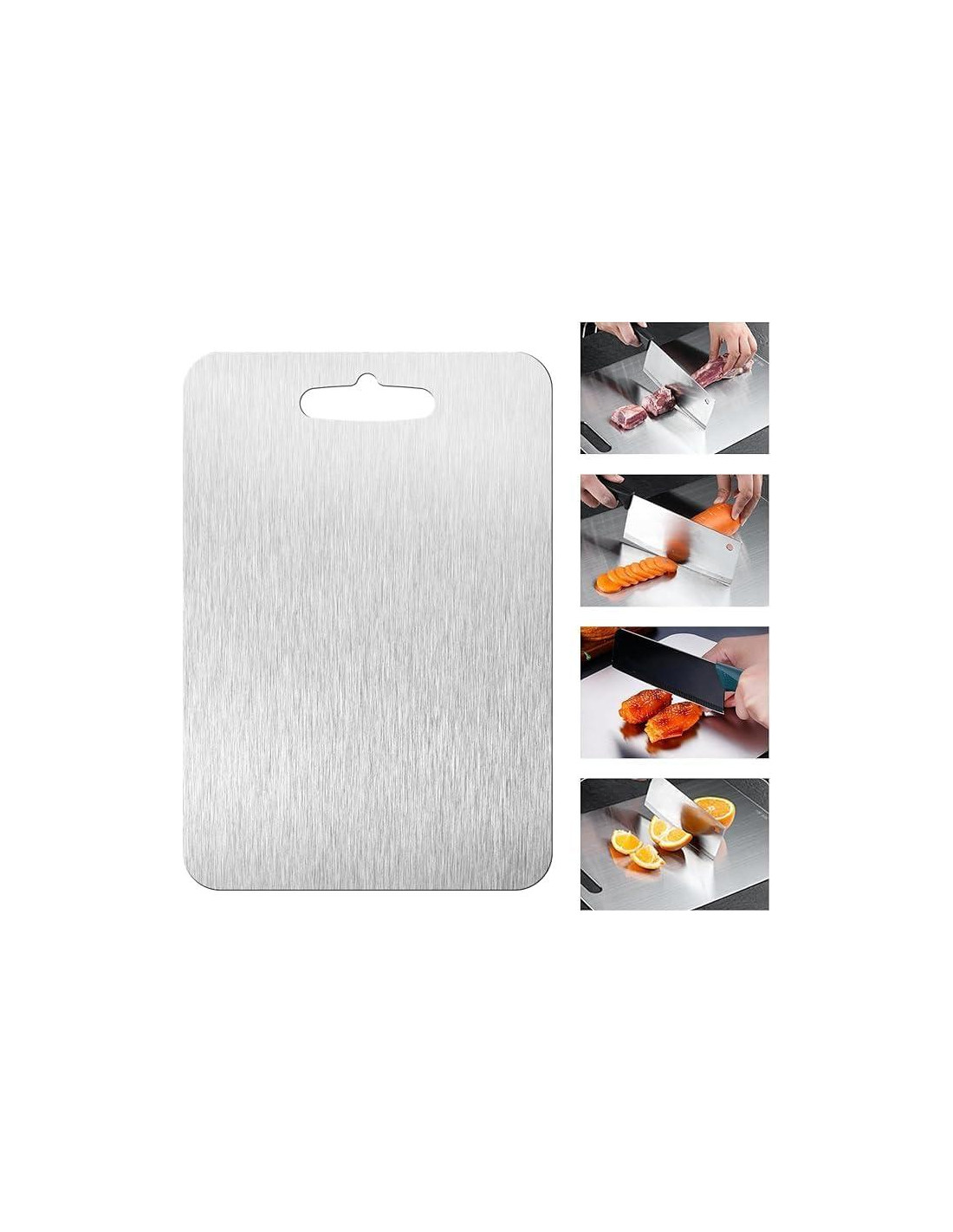 La nueva tabla de cortar de titanio es segura, higiénica y resistente. Puedes cortar carne, frutas y verduras fácilmente. No dejará marcas ni aserrín, solo limpia la superficie con agua y la limpieza es fácil.