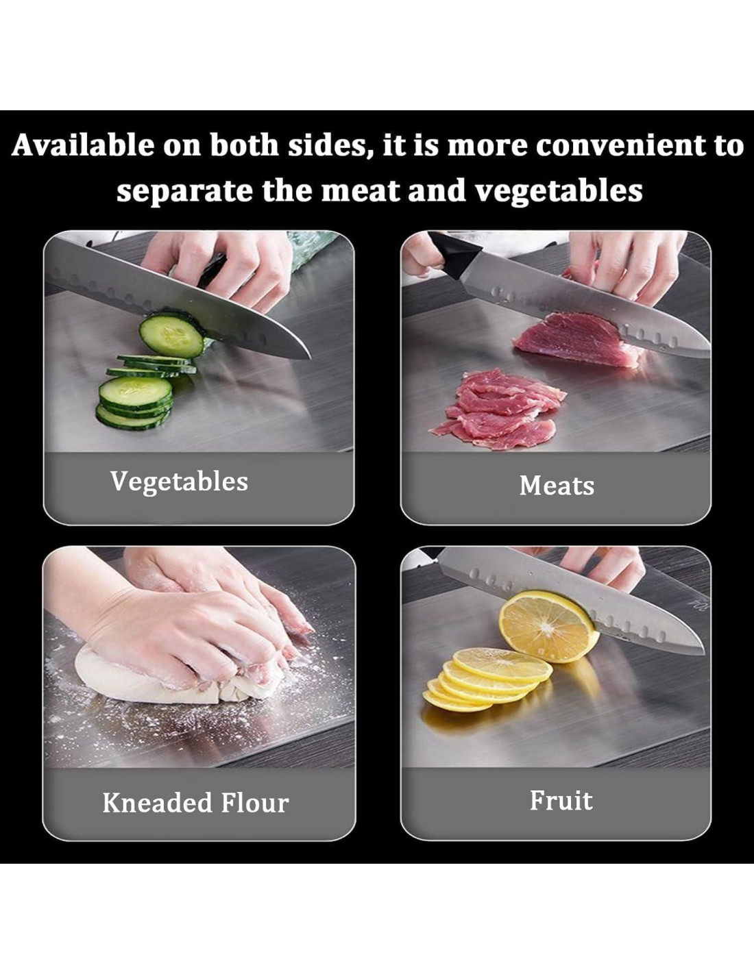 - [Fácil de Limpiar] : Esta Tabla de Cortar Antiadherente de Acero Inoxidable es fácil de limpiar, simplemente límpiala con agua y estará lista para el próximo uso, liviana y portátil, lo que la hace perfecta para acampar, hacer senderismo o picnics.
