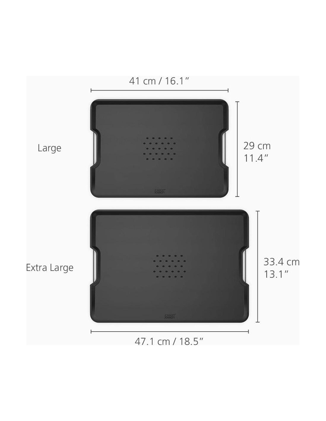 Esta tabla de cortar doble cara y multifuncional está llena de características innovadoras. Tiene una base inclinada única, bordes elevados y esquinas de fácil vertido, que ayudan en la recolección y eliminación de migas o líquidos al cortar o tallar. En un lado de la tabla hay un agarre integrado para carne que ayuda extra al tallar, mientras que el otro lado proporciona una superficie de corte suave para la preparación general de alimentos. Los bordes antideslizantes aseguran que la tabla se mantenga firmemente en su lugar durante su uso y este nuevo diseño ahora cuenta con asas de acero inoxidable en los lados para un levantamiento y transporte más fácil.