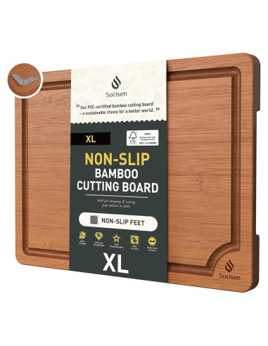 Establecida en 1995, Socisen comenzó con una profunda visión: crear herramientas de cocina que conviertan cada momento de cocción en una celebración de las hermosas simplicidades de la vida. Nuestros fundadores entendieron profundamente los deseos de aquellos que buscan no solo funcionalidad, sino también una experiencia en la cocina. A través de la innovación continua, la investigación meticulosa y un diseño inspirado, estamos dedicados a ofrecer productos de alta calidad y funcionalidad. ¿Es duradera la tabla de cortar de bambú? ¿Se agrietará o deformará fácilmente? Fabricada con bambú natural de alta densidad, nuestra tabla de cortar pasa por un prensado a alta temperatura y un tratamiento impermeable. Esto la hace más resistente y duradera que otros materiales, altamente resistente a agrietarse y deformarse. ¿Cómo limpio y mantengo la tabla de cortar de bambú? Limpie con un detergente suave y un paño suave, y evite sumergirla por largos períodos. Después de lavarla, séquela completamente o cuélguela. Aplique aceite natural apto para alimentos (como aceite de oliva) 1-2 veces al mes para mantener la tabla hidratada y prevenir agrietamientos. ¿Por qué hay fibras de bambú en la superficie después de lavarla? Como material natural, el bambú puede desarrollar pequeñas fibras superficiales durante su uso. Esto es normal ya que el bambú se adapta a los cambios de humedad y temperatura. Si aparecen pequeñas fibras, lije suavemente con papel de lija de grano fino para restaurar la suavidad. ¿Cómo se compara el bambú con las tablas de cortar de madera tradicionales en términos de sostenibilidad? El bambú es una hierba de rápido crecimiento (no madera), regenerándose en 3-5 años frente a décadas para los árboles. Nuestras tablas de cortar están hechas de fuentes completamente renovables, lo que las convierte en una opción más ecológica. ¿Dañará la superficie de bambú mis cuchillas? La textura fibrosa natural del bambú es suave con los cuchillos, ayudando a mantener el filo de la cuchilla más tiempo que las tablas de plástico duro o vidrio. Es amigable con los cuchillos mientras se mantiene resistente.