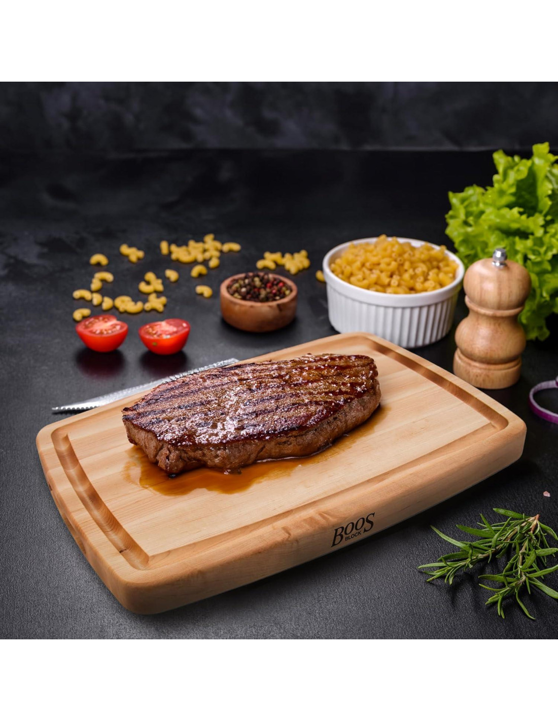 - Tabla de Cortar de Madera con Canal: Mejora tu preparación de alimentos con una tabla de cortar profesional Boos Block de la serie CB de John Boos con canal para jugo. Es ideal para cortar carnes a la BBQ, frutas, pan y verduras.