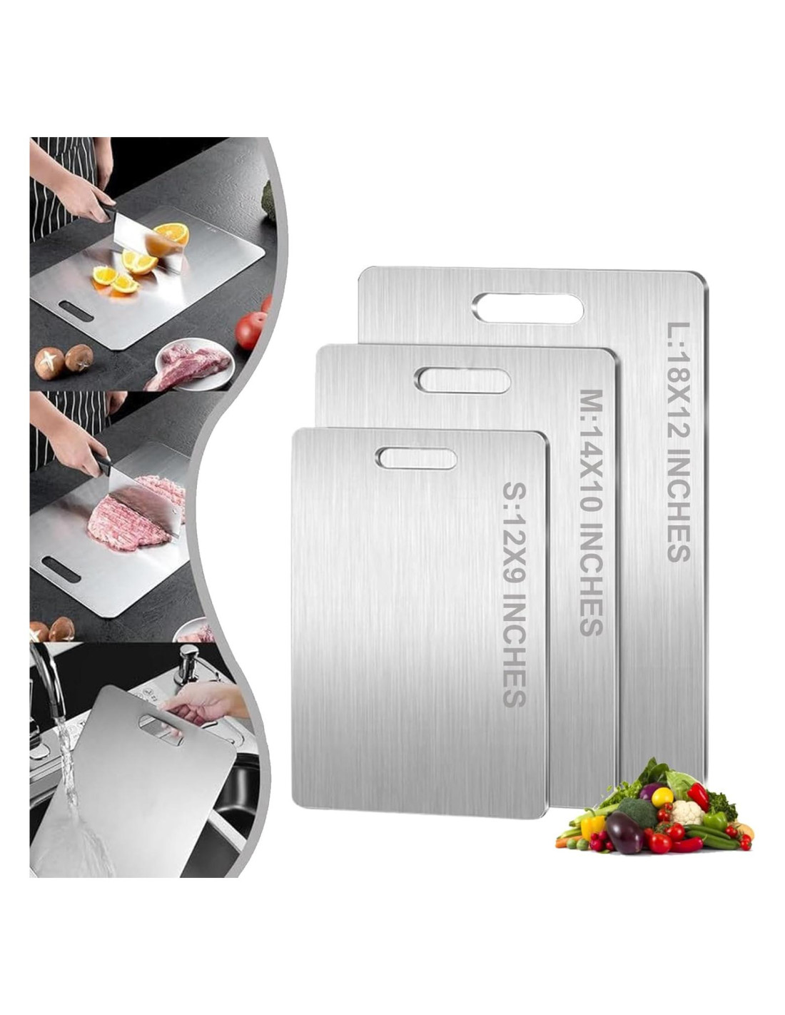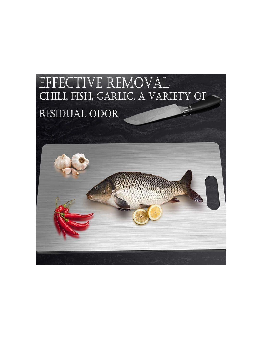 - Mantiene los Cuchillos Afilados: Nuestra tabla de cortar de titanio es más blanda que la mayoría de los cuchillos de cocina, lo que significa que en comparación con otras tablas de cortar, la tabla de cortar de titanio no dañará tu cuchillo ni lo hará desafilado. Con esta tabla de cortar, la vida útil de tus cuchillos será más larga.
