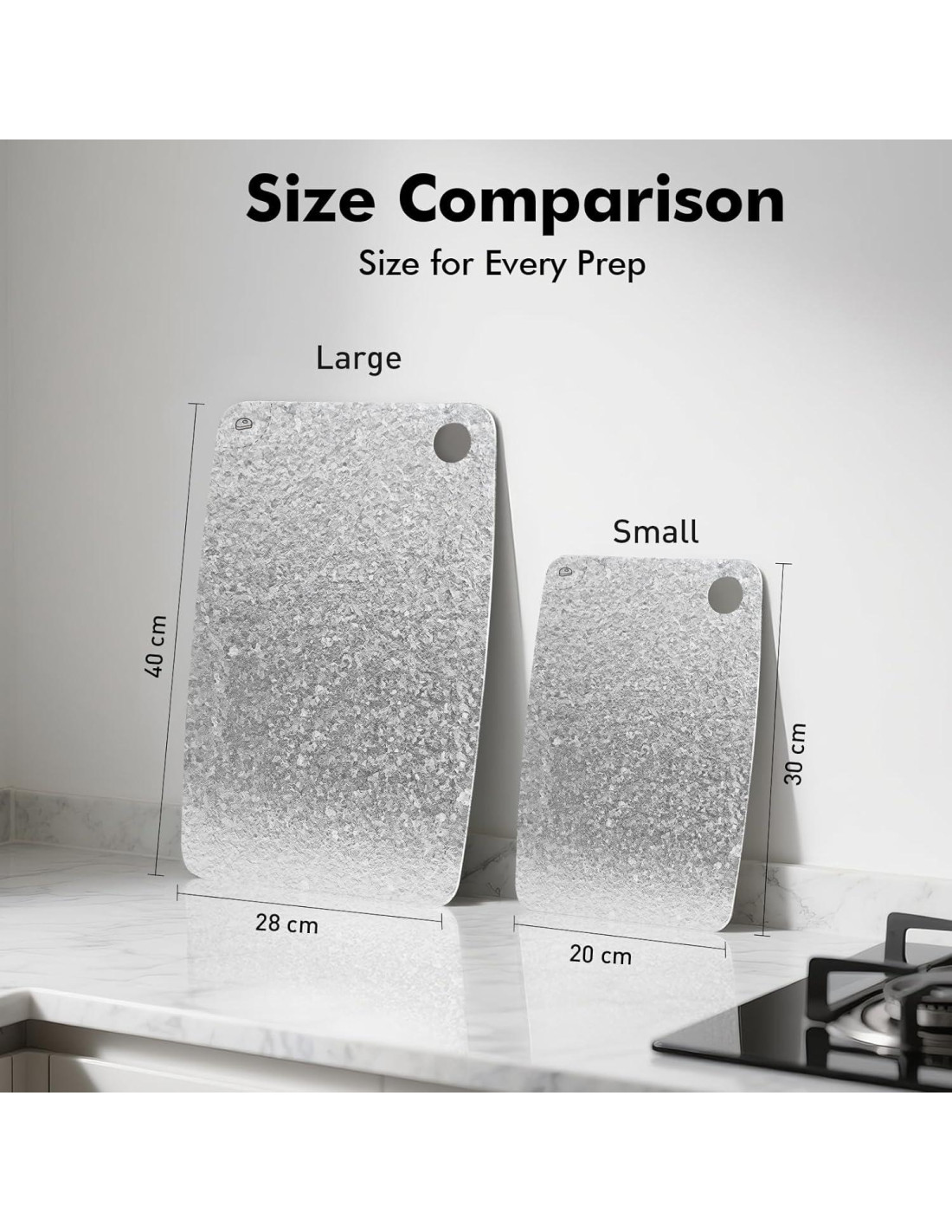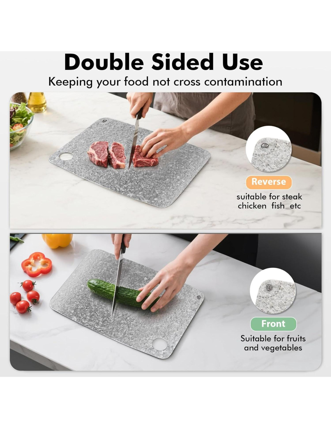 - [Protege la Agudeza del Cuchillo] Fabricada con titanio naturalmente más suave, esta tabla de cortar resiste el desafilado de las hojas y el daño en los bordes. Pueden aparecer marcas visibles de corte con un uso intensivo; esto es normal y indica que la tabla está absorbiendo el impacto para mantener tus cuchillos afilados por más tiempo.