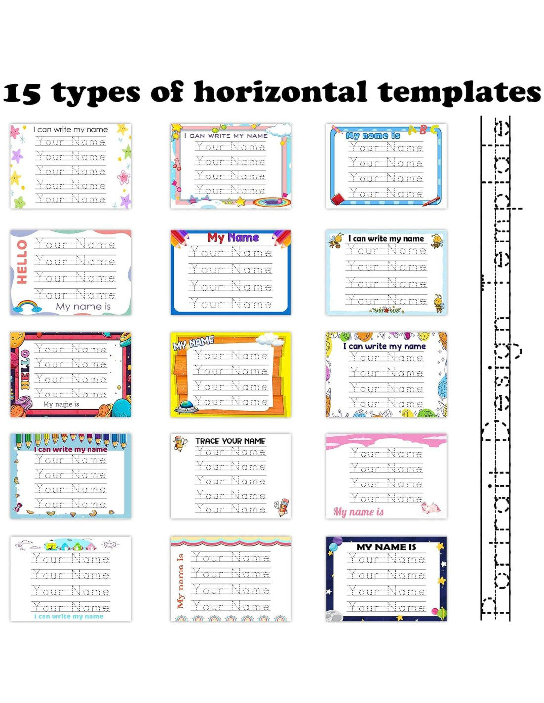 - Diseños Cautivadores - Entendemos la importancia de mantener a tu hijo comprometido. Por eso ofrecemos una variedad de plantillas llamativas con colores vibrantes y gráficos divertidos. Puedes seleccionar la fuente y el diseño que mejor refleje el estilo único de tu hijo. Estas plantillas visualmente atractivas aseguran que aprender a escribir sea una experiencia agradable.