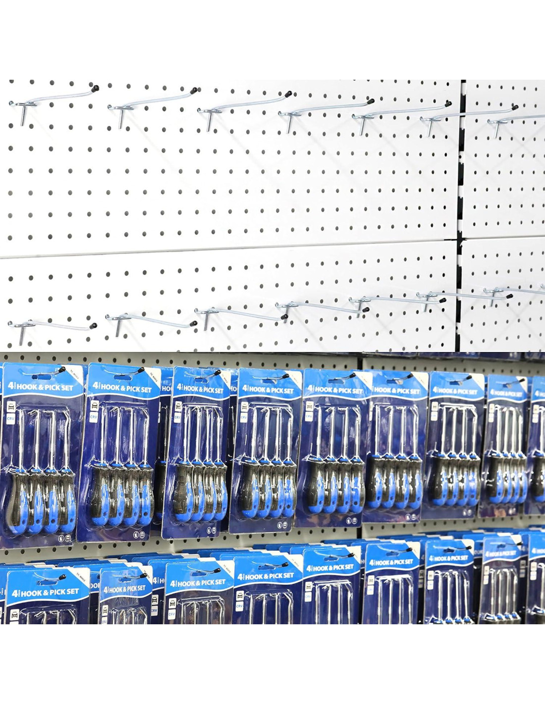 - [CALIDAD PREMIUM] Nuestros ganchos para tablero de clavijas están hechos de acero de alta calidad que permite años de uso sin doblarse ni deformarse, y están galvanizados para asegurar resistencia a la corrosión y durabilidad extra.
