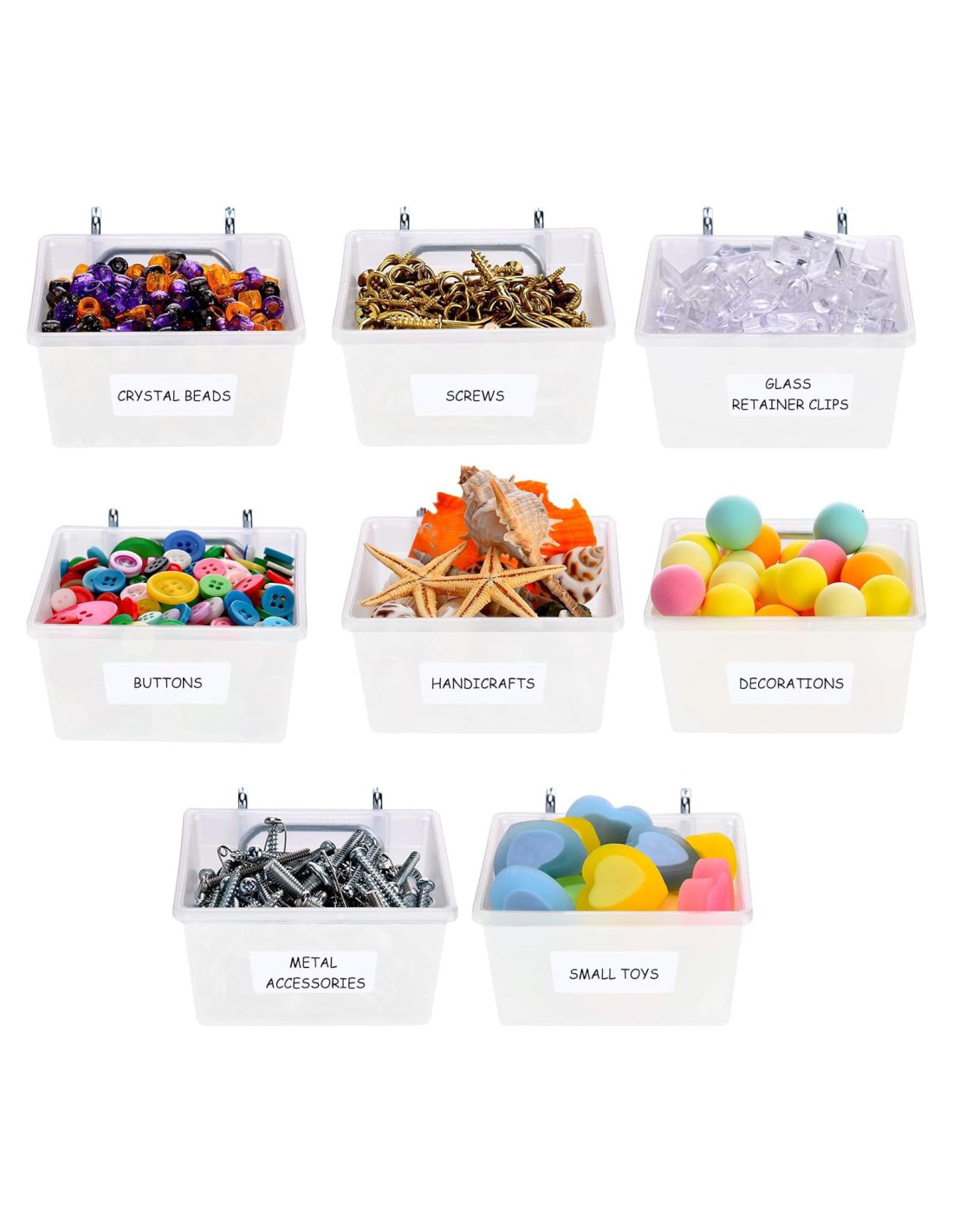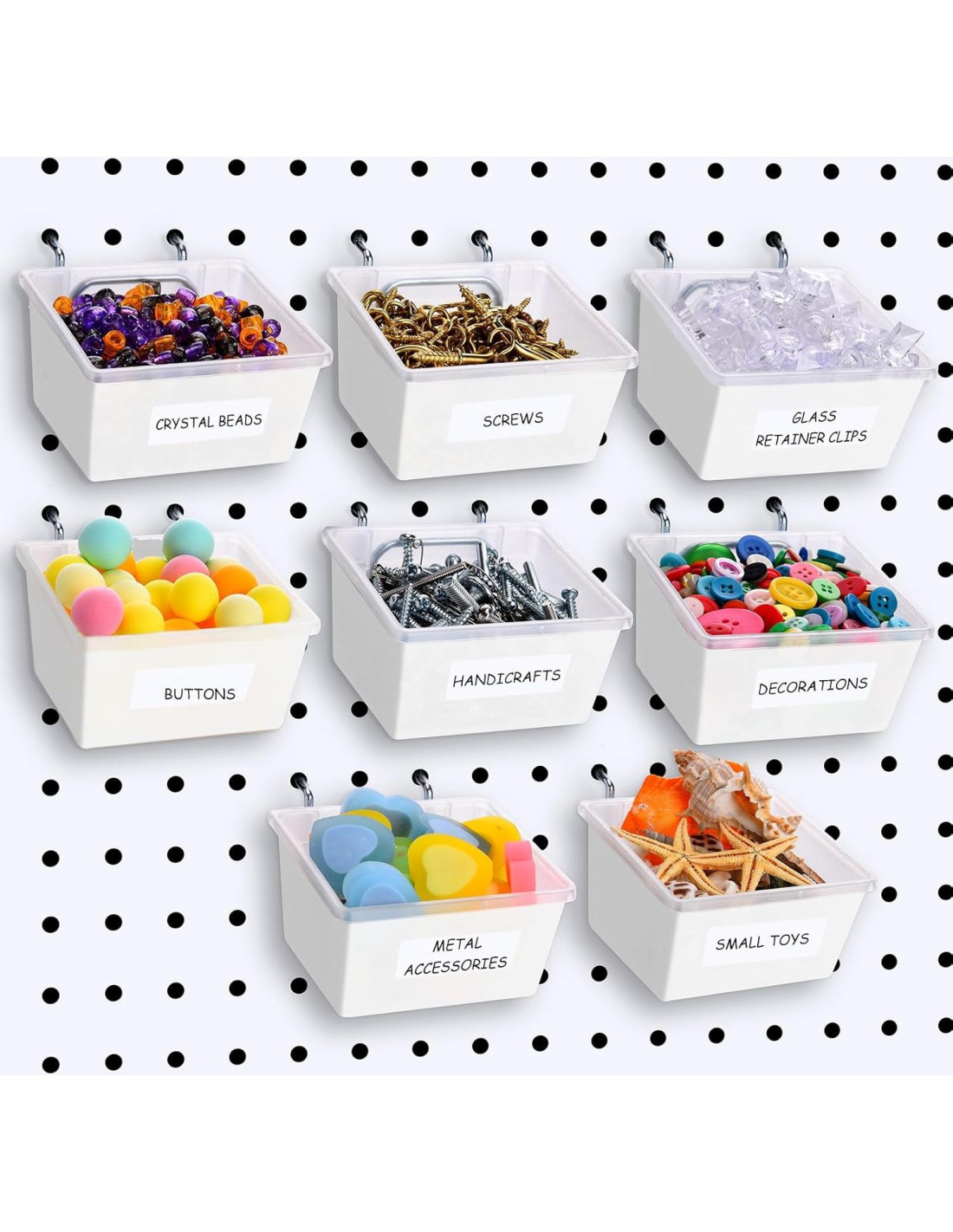- Lo que recibirás: recibirás 8 piezas de cestas para tablero perforado, 8 ganchos a juego y 1 hoja de etiqueta adhesiva, puedes marcar tus cestas de piezas con el nombre, suficiente para tus necesidades diarias de almacenamiento, manteniendo tus herramientas organizadas y listas para usar