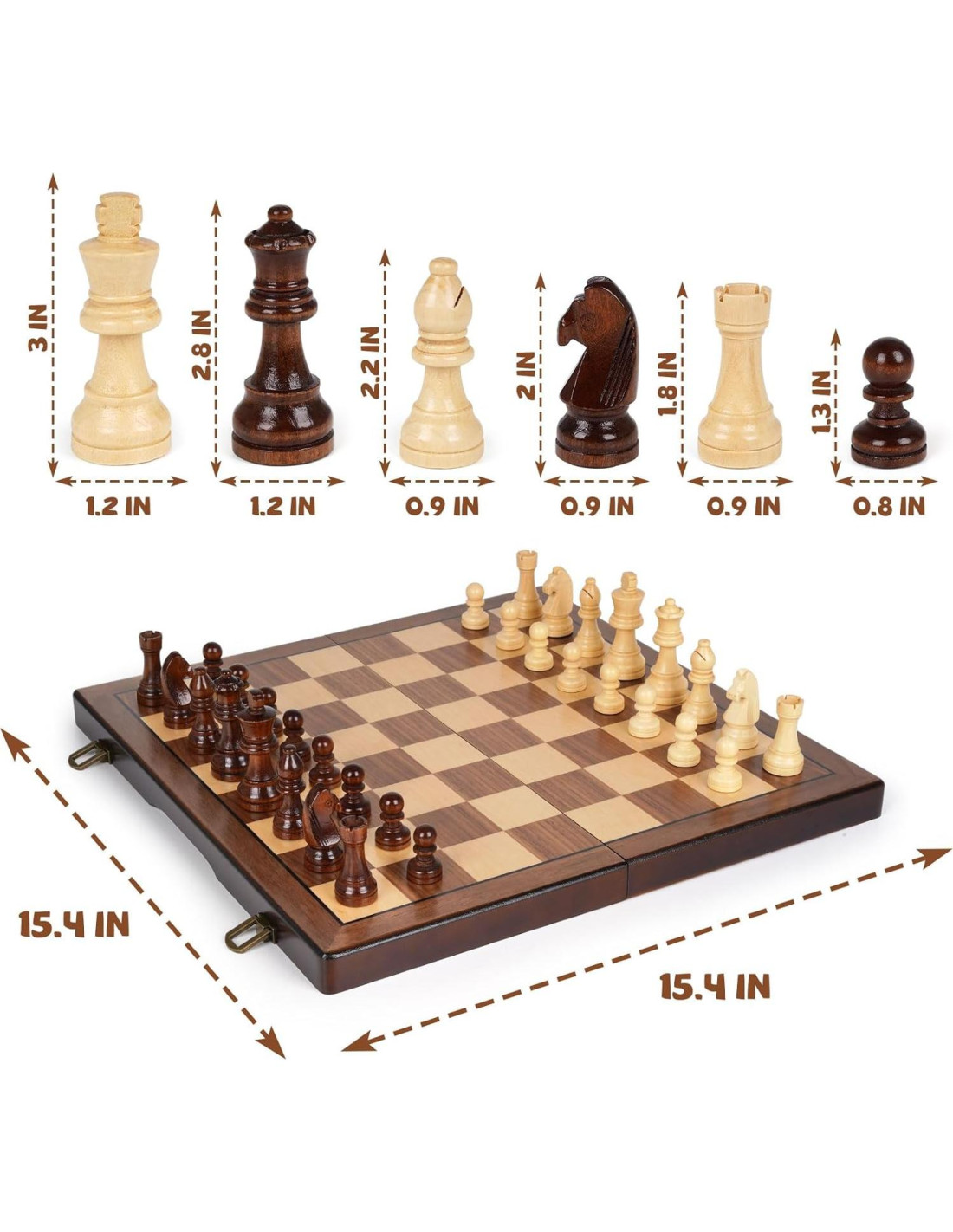 - TABLERO DE AJEDREZ PLEGABLE Y CAJA DE ALMACENAMIENTO - Para los fanáticos del ajedrez que necesitan llevar el tablero de ajedrez y el set de damas a todas partes, diseñamos este tablero de ajedrez plegable que sirve como una caja de almacenamiento de tamaño compacto para las piezas de ajedrez de madera y damas. Cuando se usa como tablero de ajedrez, es duradero y estable, cuando se usa como caja de almacenamiento, puede mantener todas las piezas bien organizadas y más fácil de llevar.