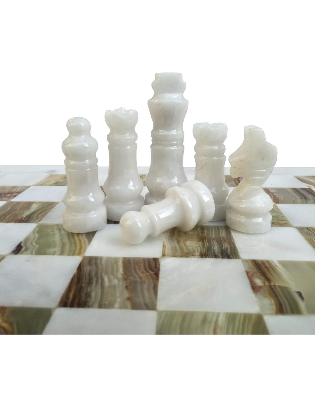 - - Calidad Superior: El juego de ajedrez es una combinación perfecta de belleza y utilidad. Este juego de mesa clásico está hecho con material en bruto excepcional de mármol onyx. Esta decoración del hogar única cumple la función de agregar belleza extra a un producto