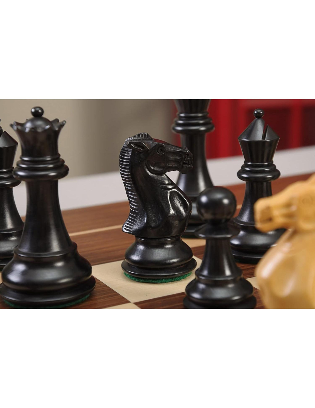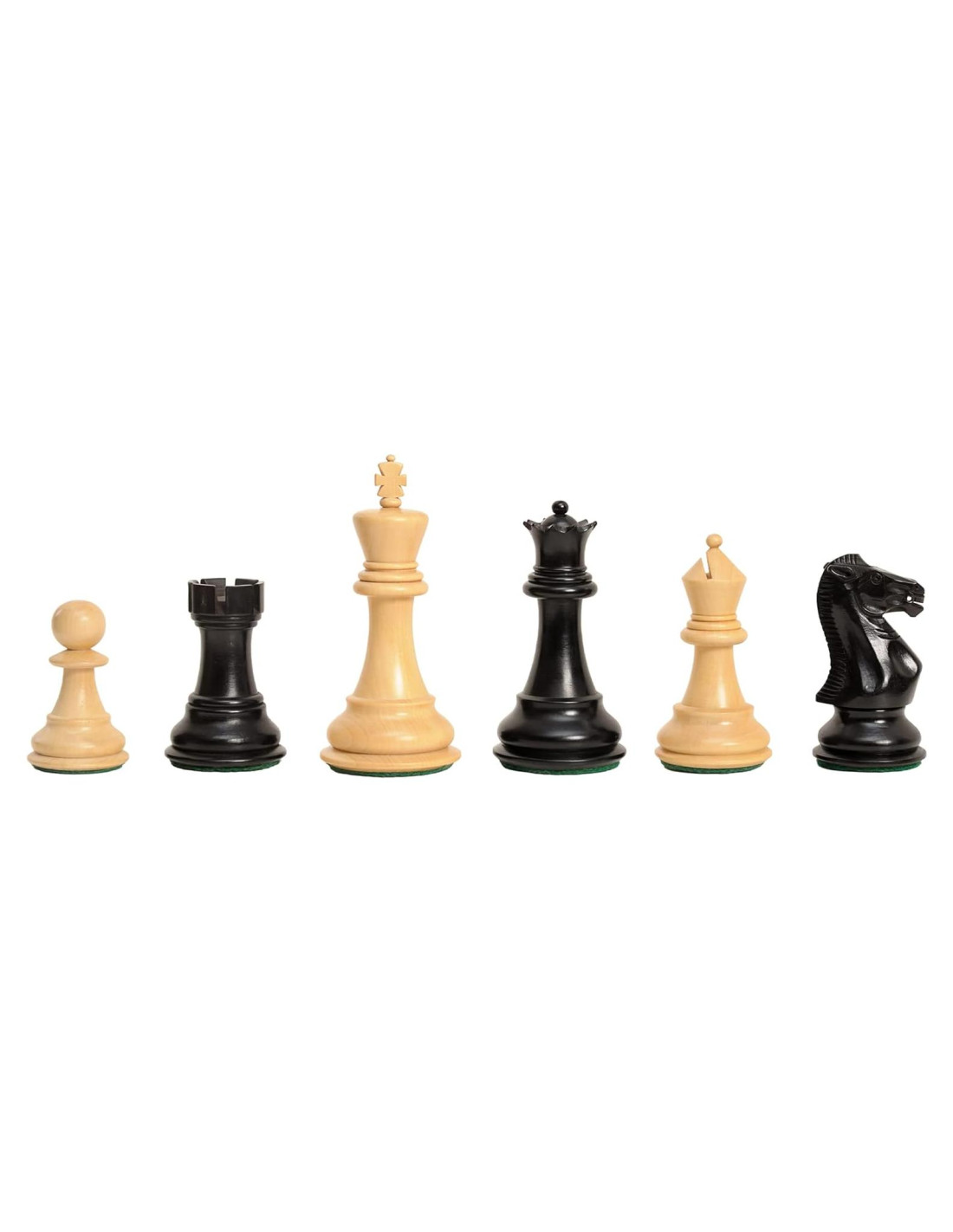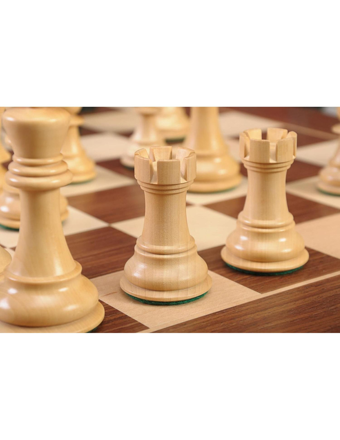 La Casa de Staunton se enorgullece de ofrecer el conjunto de ajedrez de la serie Pro-Line. Presenta un Rey de 4.0" (10.16 cm) con una base de 1.6" (4.06 cm) de diámetro. Las piezas de ajedrez están talladas a mano por nuestros maestros artesanos y fabricadas con maderas de la más alta calidad. Las piezas de ajedrez están pesadas con lujosos almohadillas de tela de billar en la base y un hermoso acabado.
