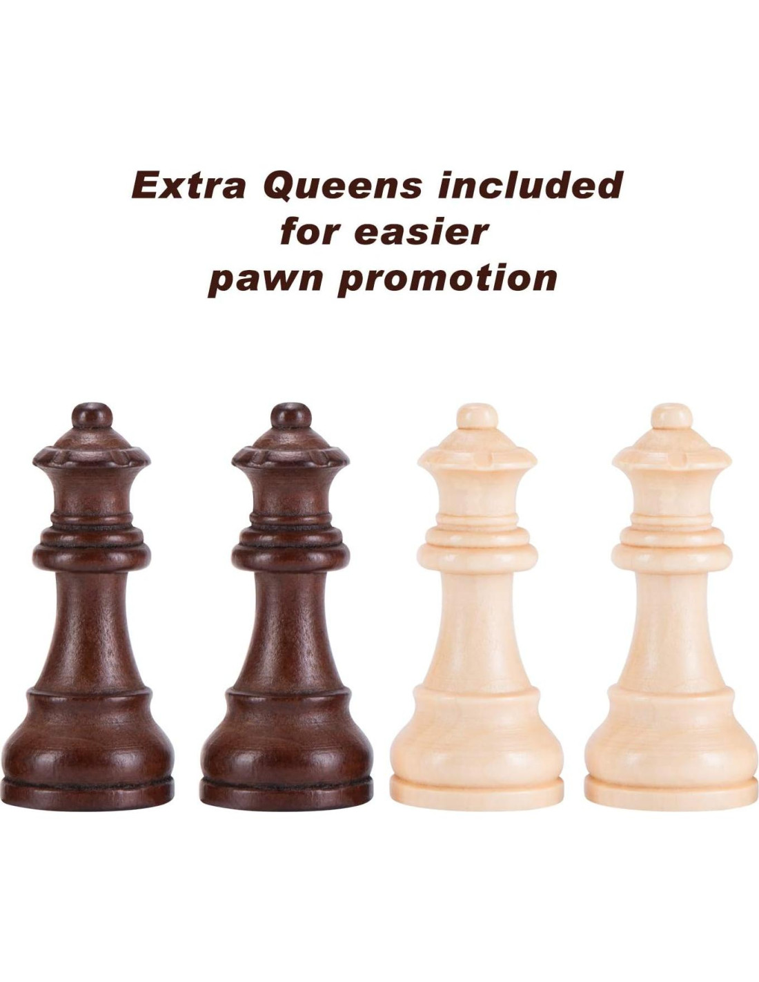 - 2 REINAS EXTRA - Se incluyen 2 piezas de reina extra en el paquete en caso de pérdida por uso inadecuado, super conveniente para cambiar tu peón por una pieza de reina real durante el juego