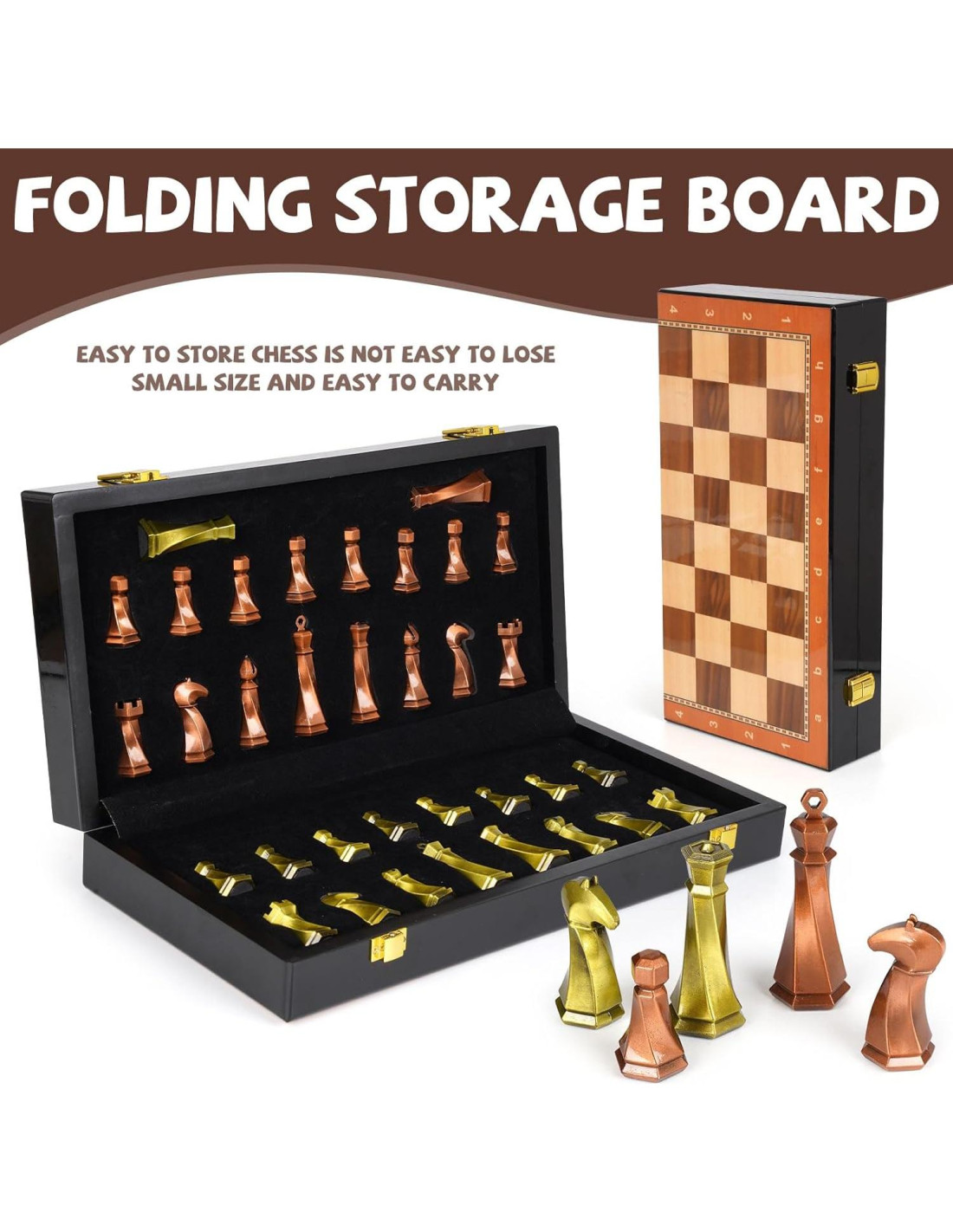 - Piezas de Metal y Cromo Únicas: Nuestro juego de ajedrez de metal cuenta con un diseño único y elegante que presenta piezas de cromo y metal con un brillo especial que se mantiene impresionante durante años. El tablero de ajedrez maravillosamente veteado no solo sirve como un tablero de juego funcional, sino que también es un atractivo centro decorativo en su hogar.
