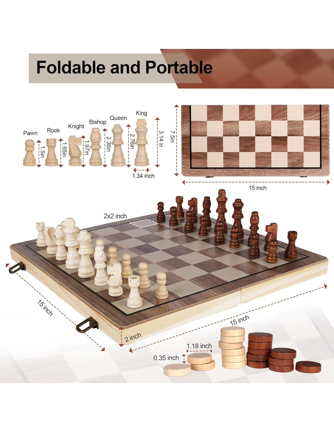 - Estilo: Juego de Ajedrez y Damas de Madera Clásico