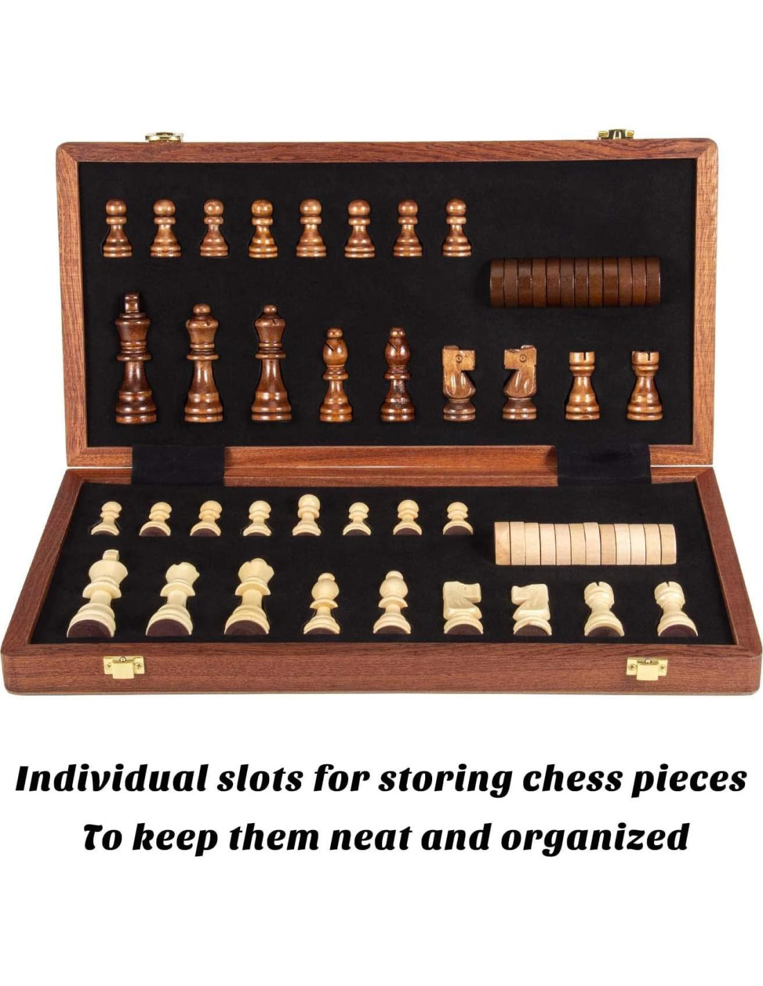 - GRANDE Y PLEGABLE - El tablero de ajedrez mide 15 x 15 pulgadas (38.1 x 38.1 cm) con característica plegable para asegurar una maravillosa experiencia de juego así como portabilidad para llevar mientras viaja. La altura del rey es de 3 pulgadas (7.62 cm) y se incluyen 2 reinas extra
