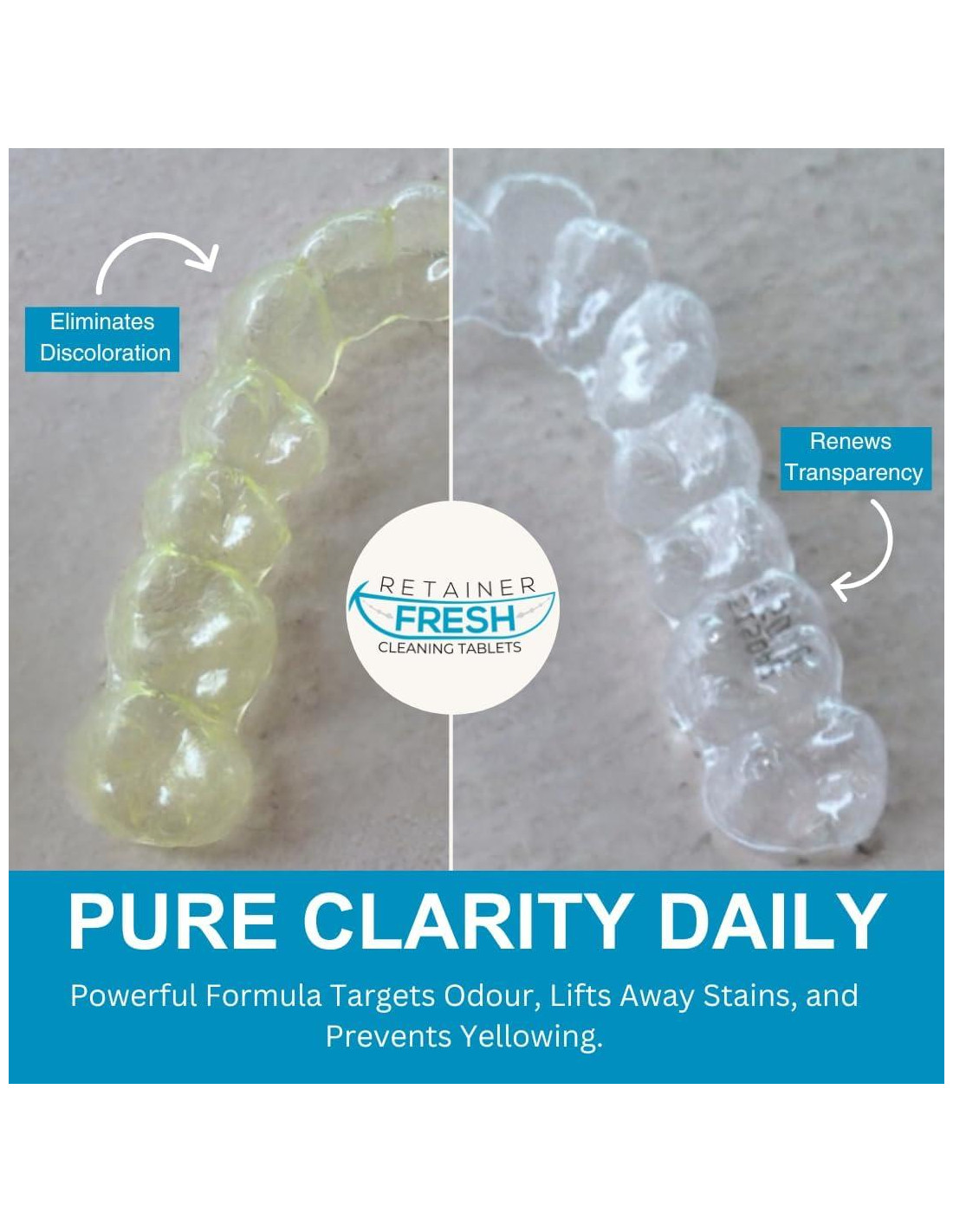 - Elimina el 99.9% de Manchas, Olores y Descoloración - Las tabletas Retainer Fresh utilizan ingredientes que restauran tu aparato dental ayudando a la eliminación de sarro, llevando a artículos perfectamente limpios.