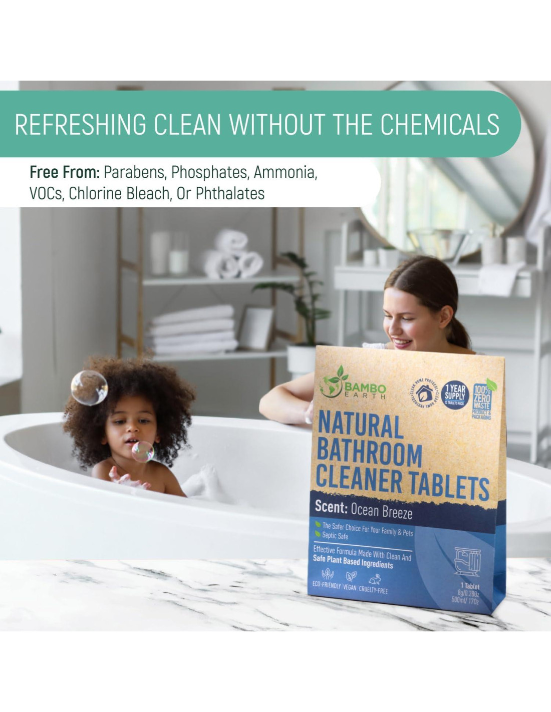 - HIGHEST QUALITY AND NATURAL CARE! Ve la diferencia con la tableta limpiadora para baño BAMBOEARTH. Nuestra fórmula natural elimina eficazmente la acumulación de jabón y la suciedad en duchas, bañeras, lavabos, azulejos y más, mientras que nuestros ingredientes a base de plantas y minerales están libres de parabenos, fosfatos, amoníaco, compuestos orgánicos volátiles, blanqueador de cloro o ftalatos, lo que hace que este limpiador sea la opción más segura para tu familia y mascotas!