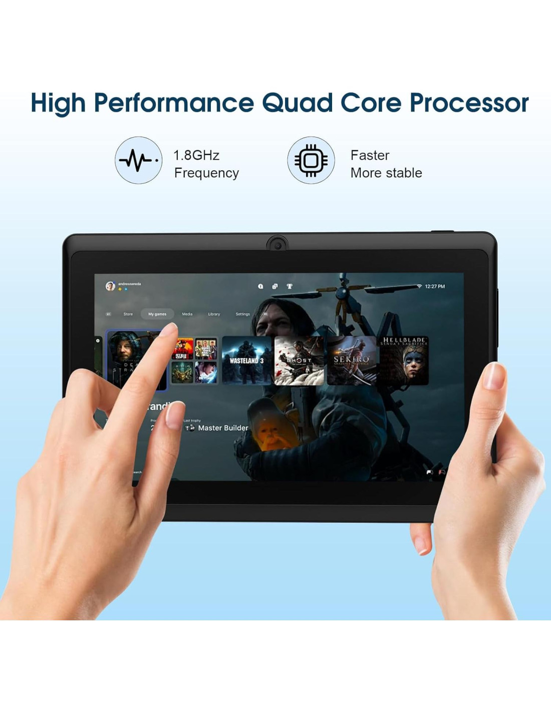 - [Batería de Larga Duración Mejorada] : Tableta Android con batería grande de 3000mAh de larga duración continua, con puerto de carga USB-C, brindando a los usuarios más tiempo de entretenimiento y trabajo y menos tiempo de carga, la tableta de 7 pulgadas con función de control parental puede planificar mejor el uso del tiempo de los niños, evitando el uso excesivo de la tableta.