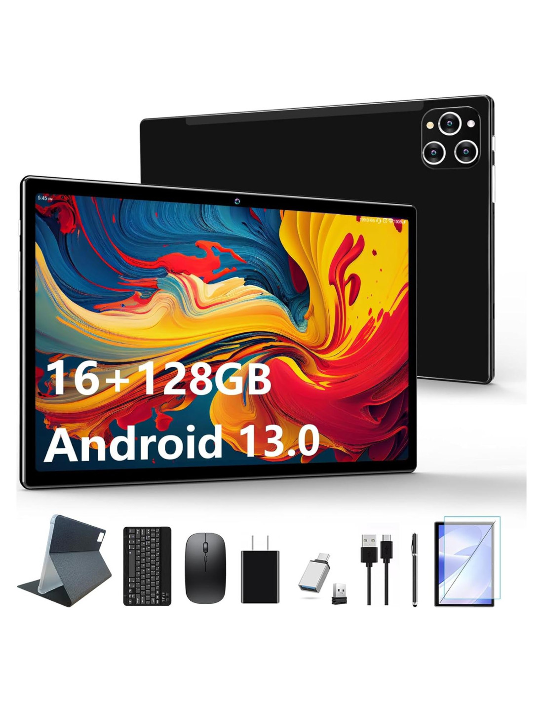 - [Experiencia de memoria extra] Tablet con 128GB de ROM interna ofrece una cantidad infinita de memoria, para que puedas disfrutar de la experiencia de almacenar y descargar tanto como desees con esta tablet Android 13. Además, puedes expandir tu memoria añadiendo hasta 1TB de tarjeta TF tú mismo según sea necesario. 16GB de RAM de esta Tablet de 10 Pulgadas proporciona velocidades de funcionamiento más rápidas (8+8 expansión de memoria virtual). Logra mayores actualizaciones al expandir la tecnología.