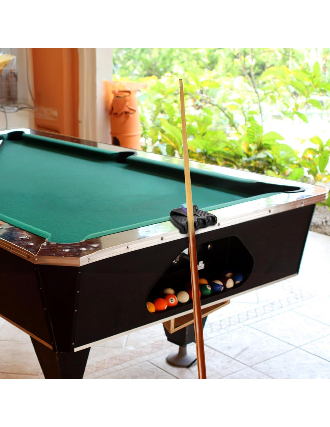 - Fácil de Usar: No se requiere ensamblaje, solo coloca el soporte de tacos en el borde de la mesa de billar, y tendrás un estante de tacos de billar portátil listo para usar. En segundos, puedes instalar el soporte de tacos tú mismo sin esfuerzo, fácil de usar.