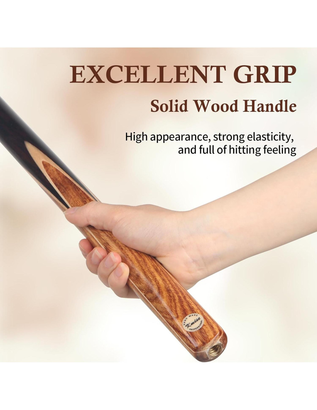 Kmise 3/4 División Snooker Pool Cue, Hecho a Mano, 4-Caras Empalmado Profesional Snooker Pool Stick, con 2 Extensiones, Juego Completo Incluyendo Puntas de Cuero, Tizas, Guante, Protectores, Toalla (538g)