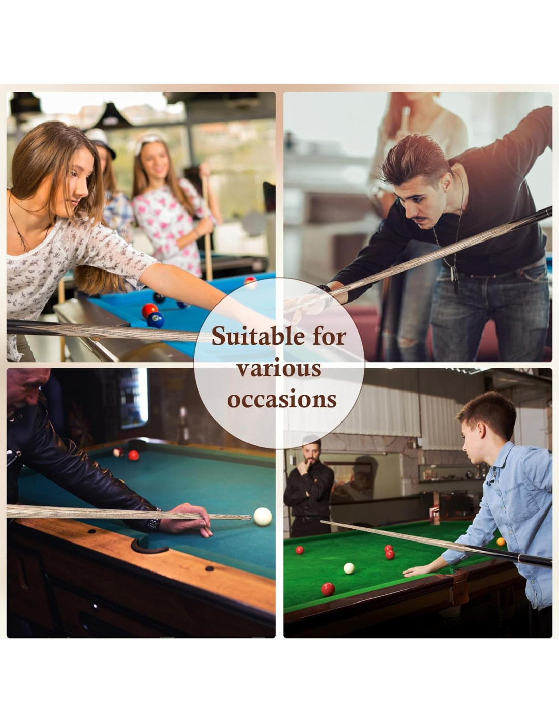 - Componentes incluidos: tizas de pool, guante de palo de pool, puntas de palo de pool, protectores de unión de palo de pool, palos de pool