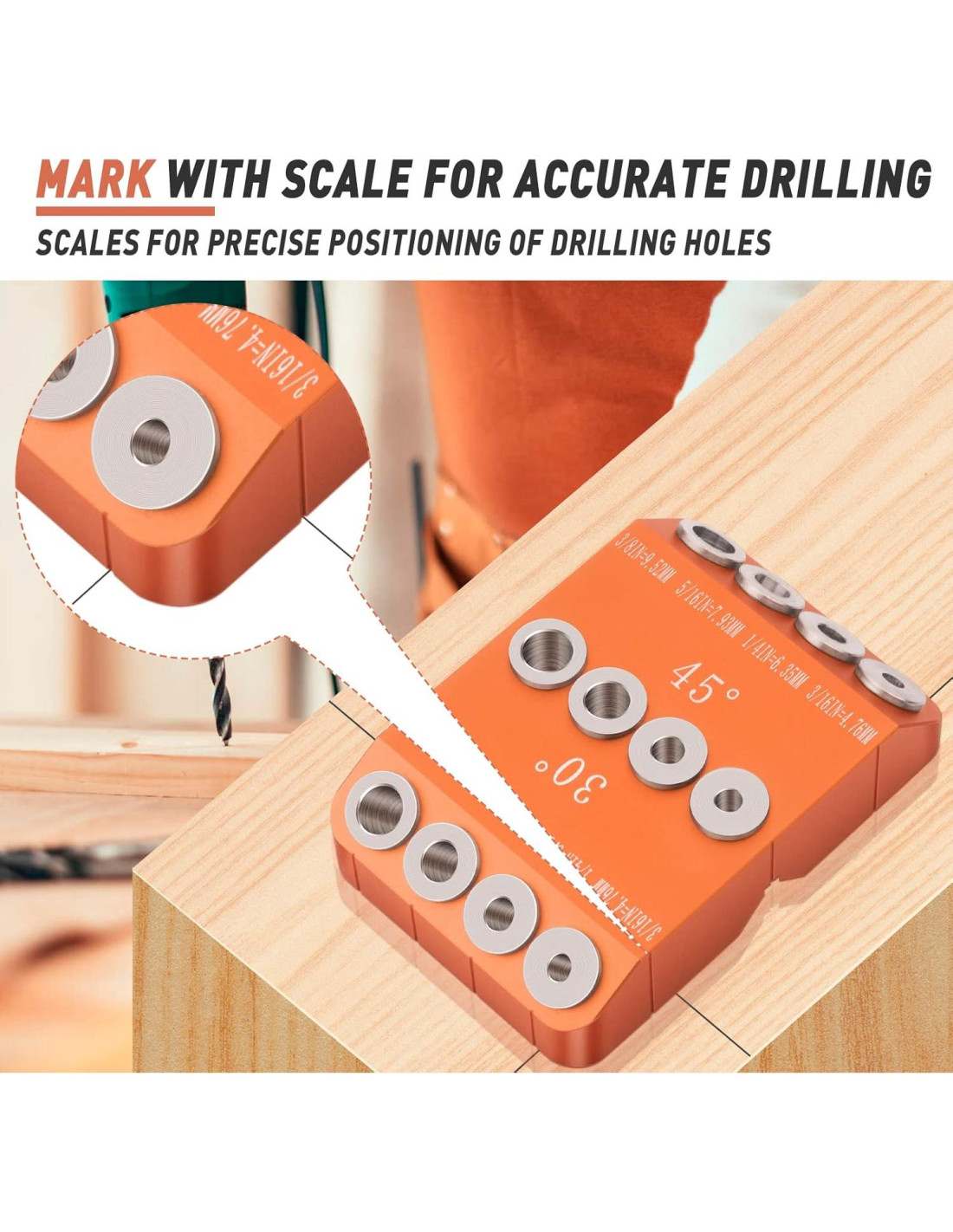 - TODO MATERIAL METÁLICO DURO: El jig de taladro para agujeros angulados está equipado con mangas de acero cromado ultra-duras, que son resistentes al desgaste, robustas y duraderas, sin necesidad de preocuparse por el desgaste al perforar, y la precisión de perforación es siempre sin errores. El cuerpo principal de la guía de taladro para riel está hecho de aleación de aluminio de grado industrial de alta calidad, dura y duradera, con superficie anodizada CNC, resistente al desgaste y a la corrosión, con marcas claras.