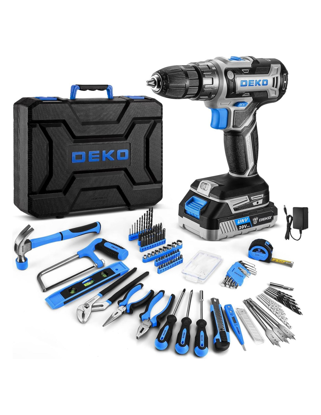 - [ TODAS LAS HERRAMIENTAS EN UNA CAJA DE HERRAMIENTAS ] Este kit de herramientas para el hogar contiene las herramientas más útiles y necesarias en un almacenamiento de caja como organizador de juegos de herramientas: conjunto de taladro de batería de 20V y kit combinado, destornilladores, sierra, llave hexagonal, puntas, sockets, mango giratorio, cinta métrica, martillo de garra, tapa de martillo, llave ajustable, nivel, juego de alicates y caja de herramientas de plástico, etc.