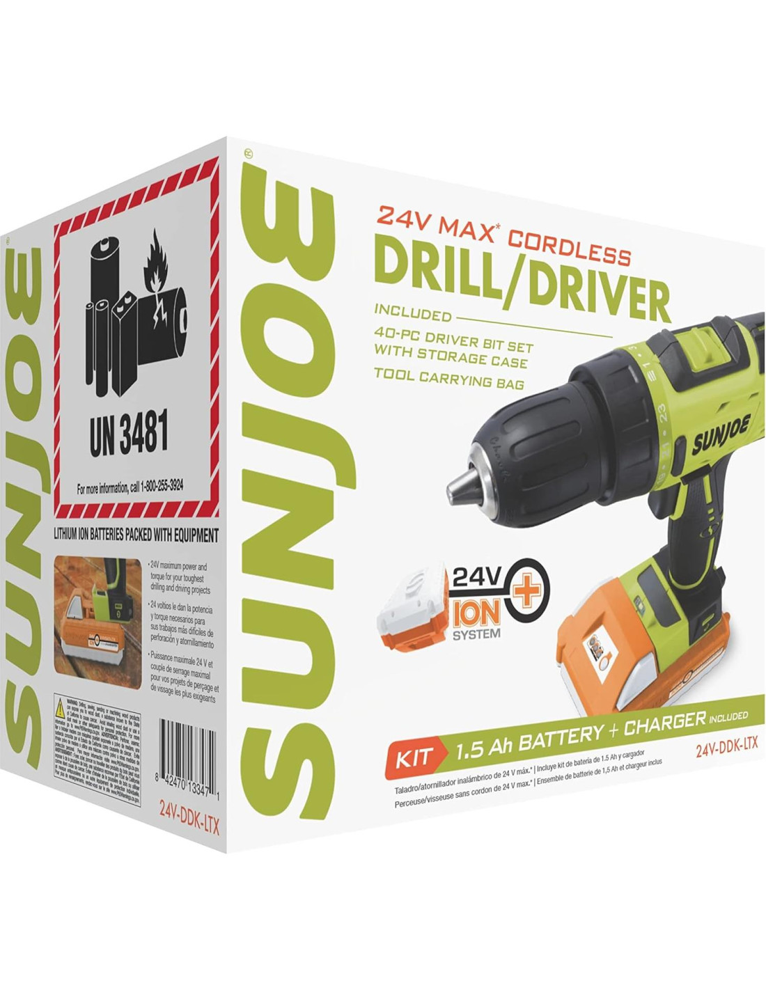 ¡ENFRENTAR PROYECTOS DIFÍCILES EN CASA Y HOBBIES! Pon el control de potencia al alcance de tu mano con este práctico Taladro/Atornillador Inalámbrico de 24 Voltios con Juego de 40 Piezas y Estuche de Almacenamiento de Sun Joe. Alimentado por el exclusivo Sistema de Batería IONMAX de 24 Voltios, este taladro/atornillador inalámbrico proporciona energía y rendimiento recargables sin desvanecimiento y sin gas. 265 PULGADAS-LIBRA DE TORQUE pone la potencia en la palma de tu mano, para enfrentar tus tareas de atornillado más difíciles. Y el EMBRAGUE DE 24 POSICIONES de Sun Joe incluye 23 configuraciones de tornillos y 1 configuración de taladro, para que tengas exactamente la potencia que necesitas para tus trabajos de bricolaje. Ensambla muebles, cuelga fotos y pinturas, y sé un hacedor tú mismo donde sea que el trabajo te lleve. El juego de 40 PIEZAS y el ESTUCHE DE ALMACENAMIENTO incluidos facilitan mantener todo lo que necesitas a mano. Y con el DISPARADOR DE VELOCIDAD VARIABLE y la CAJA DE ENGRANAJE DE 2 VELOCIDADES, tendrás todo el control que necesitas para realizar tareas en casa, taller, garaje y lugar de trabajo con 24 voltios de pura conveniencia inalámbrica. Las características innovadoras especiales de Sun Joe incluyen un NIVEL DE BURBUJA INCORPORADO y el medio para mantener tornillos, tuercas y pernos a mano con la BANDEJA MAGNÉTICA a bordo. Además, una LUZ LED de 1 W mejora la visibilidad en espacios oscuros o reducidos. También elige la función de taladro hacia adelante/reversa. Viene con una garantía de 2 años. ¡Disponible en rosa! Así que, cuando las cosas se ponen difíciles, Ve con Joe para el rendimiento de potencia que exiges. El Taladro/Atornillador Inalámbrico de 24 Voltios Máx* 24V-DDK-LTX de SUN JOE. EQUÍPATE.