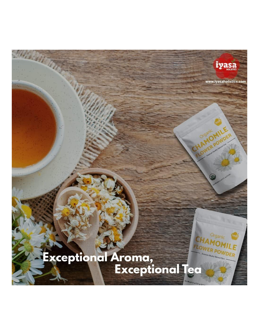 - <b>CERTIFICADO USDA ORGÁNICO, NO OGM:</b><br/> El Polvo de Manzanilla Orgánica Iyasa se obtiene de granjas certificadas por NOP (USDA) en India y se empaqueta en una instalación registrada por la FDA. Es No OGM, grado alimenticio, vegetariano y vegano; libre de gluten, soja, trigo y maíz. También está libre de conservantes o aditivos.